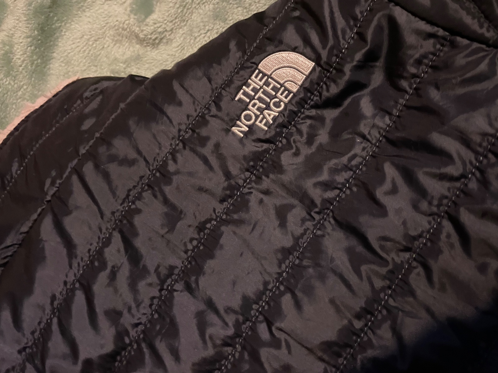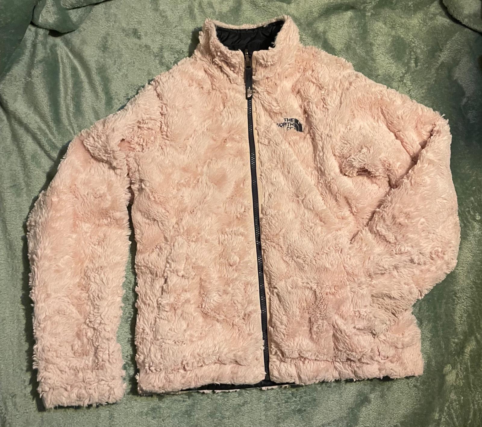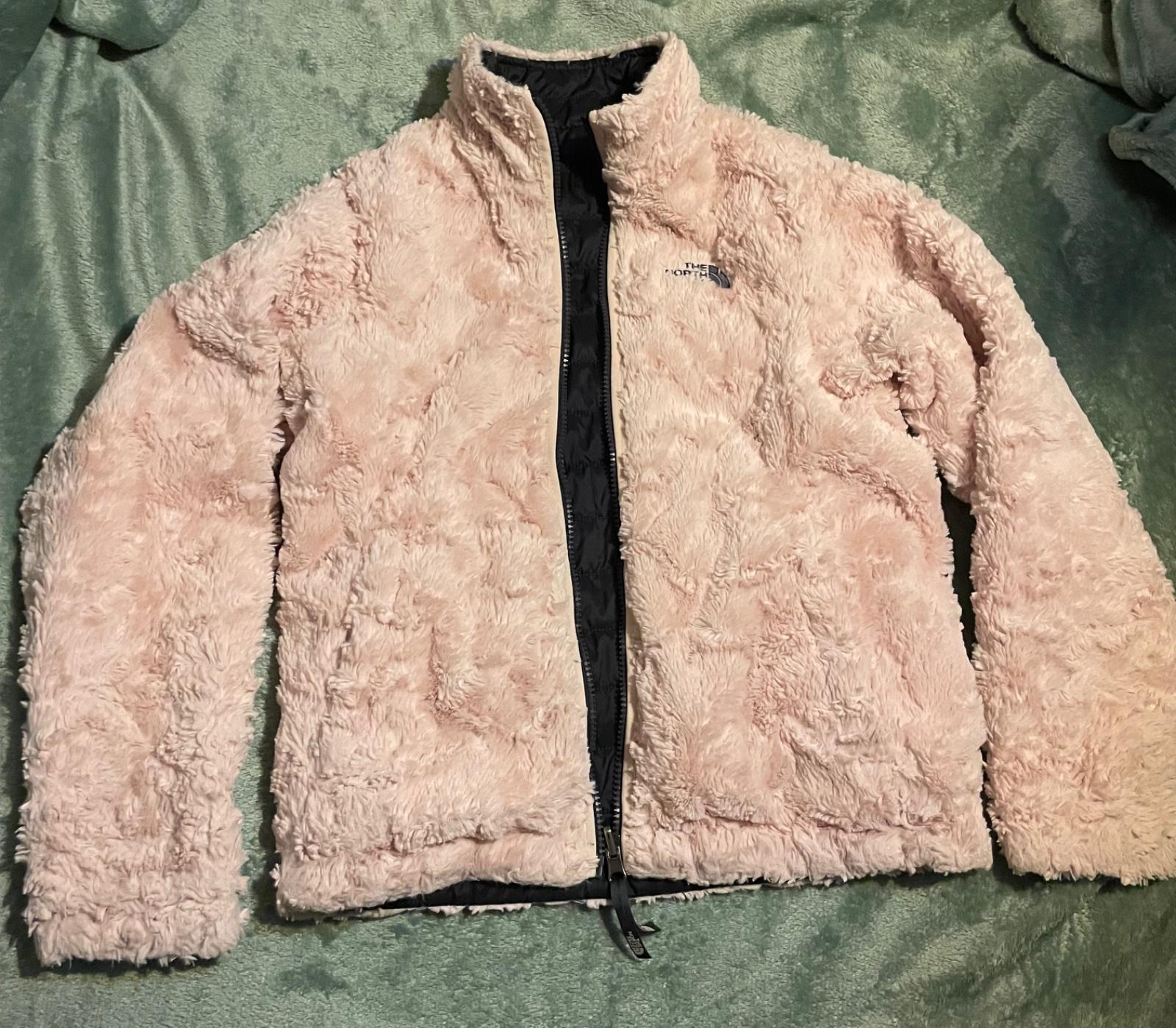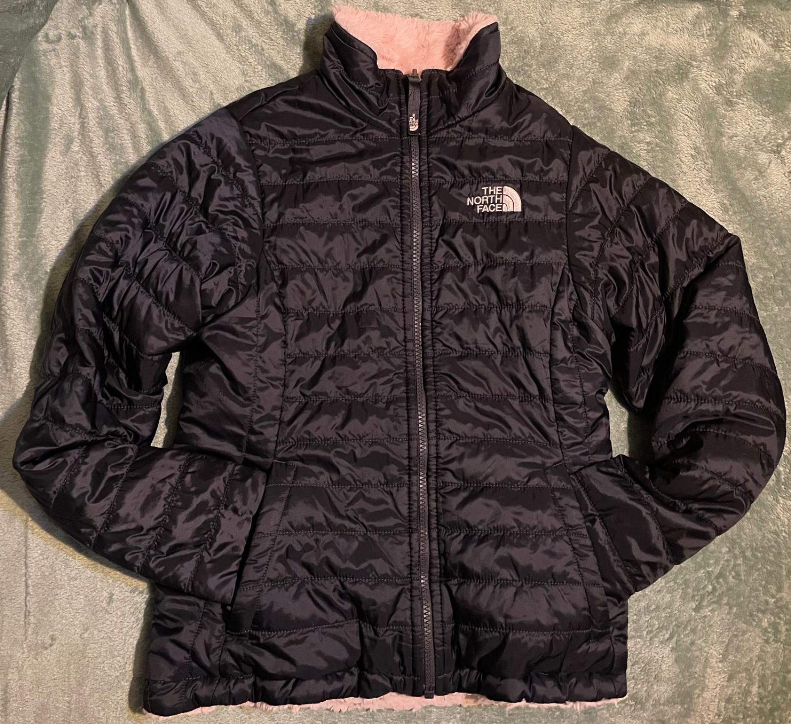 ..teplá dievčenska bunda The north face, vel.M (146/152-10/12r)..obojrranná..super stav..krásne farby-kombinácia tmavo modrej páperky s jemne ružovou príjemnou kožušinkou..