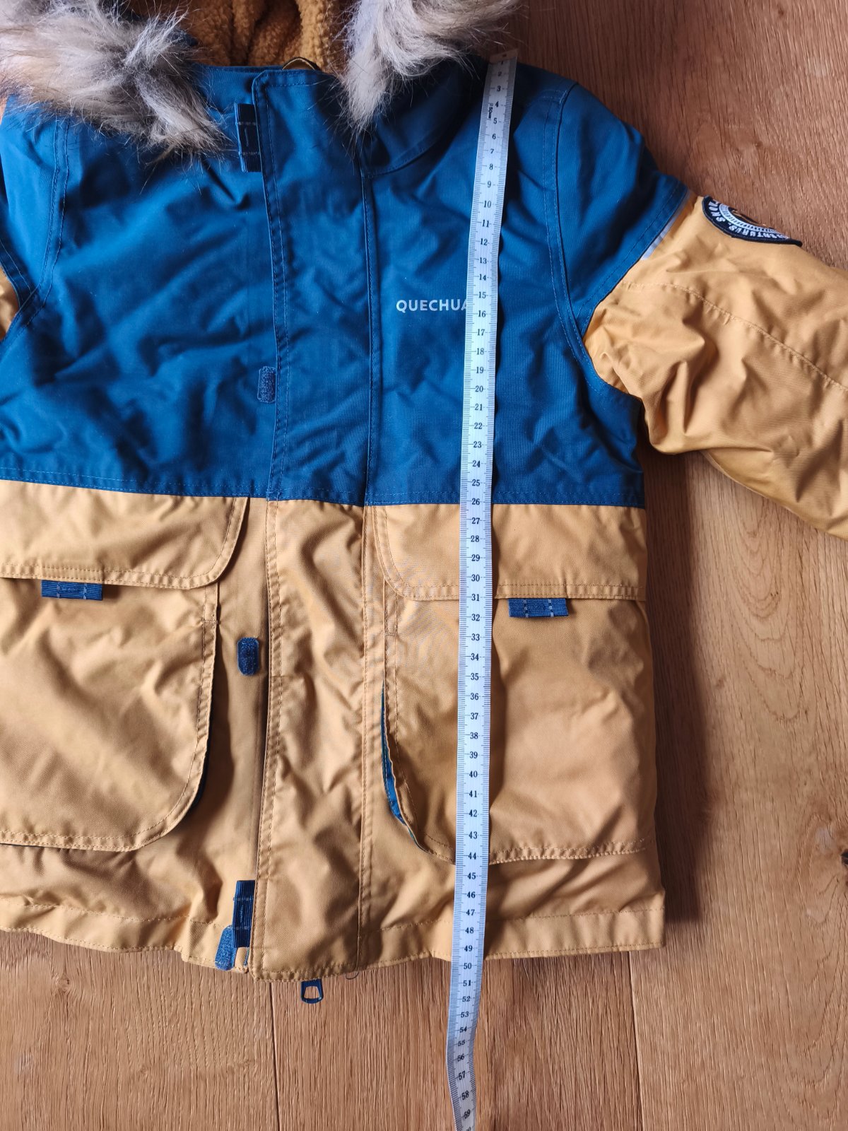 Ponukam na predaj krasnu teplucku chlapcensku bundu Quechua. Velkost je sice pisana 113-122cm,ale realne je mensia,tak na 110cm, rozmery su na foto.