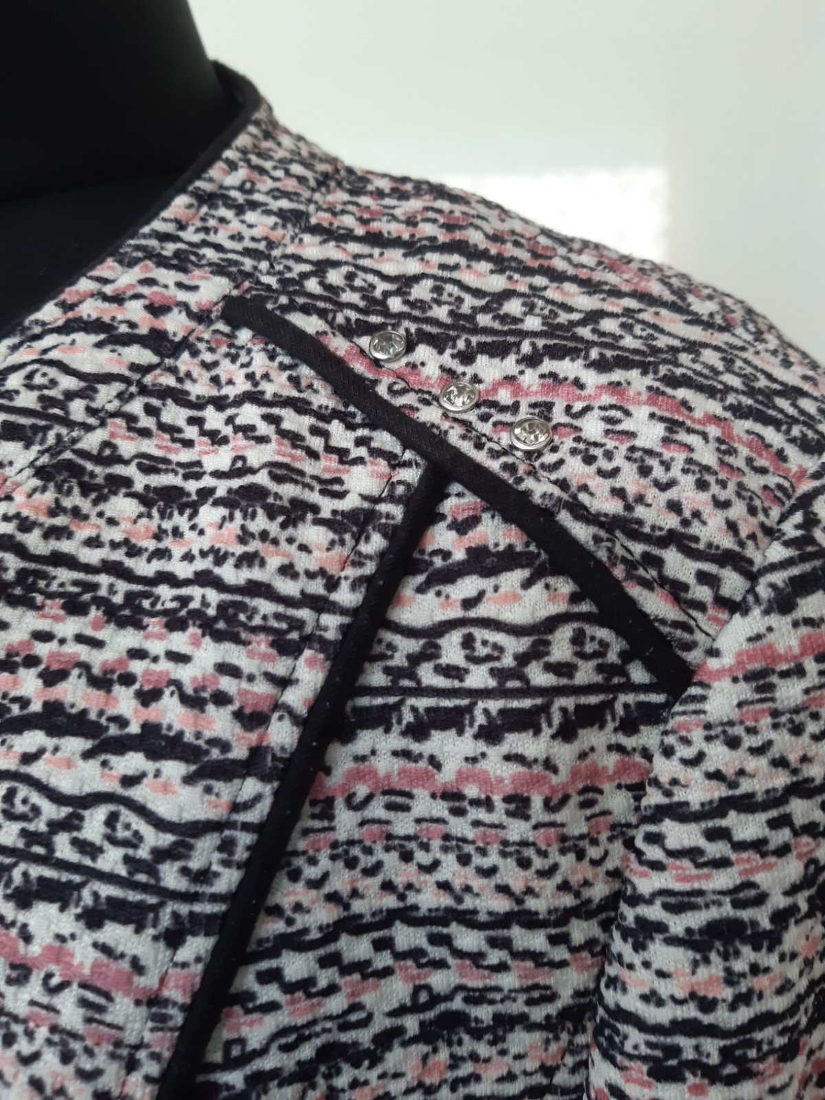 Nosené minimálne, perfektný stav, pekne sedí na postave. Dl. 60 cm, šírka cez prsia 50x2 cm, dl. rukáva 63 cm, pas 44x2 cm. Súper stav ako nové, bez známok použitia. Sedí na veľkosť 40. udávaná veľkosť je 38, je to nemecké značenie, čiže nižšie ako naše, potrebné premerať .