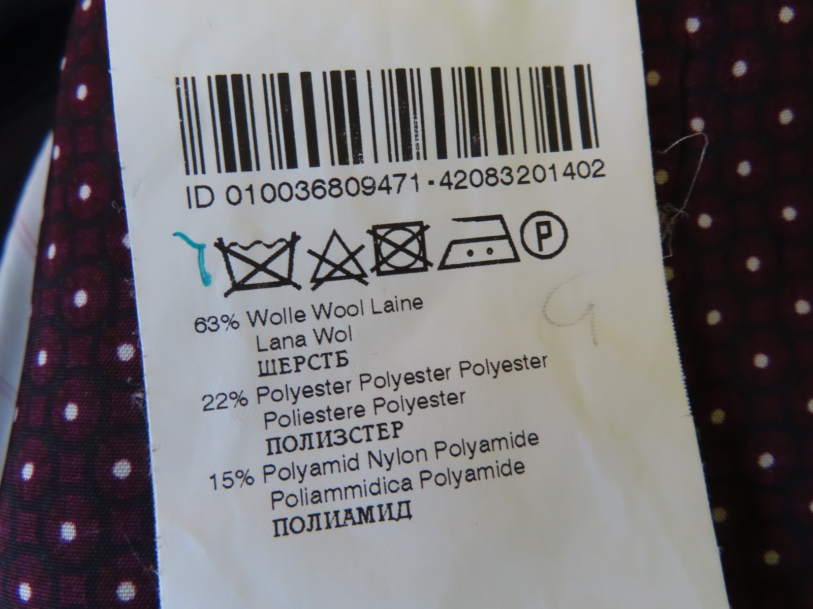 Kvalita: 63% panenská vlna, 22% polyester, 15% polyamid.
