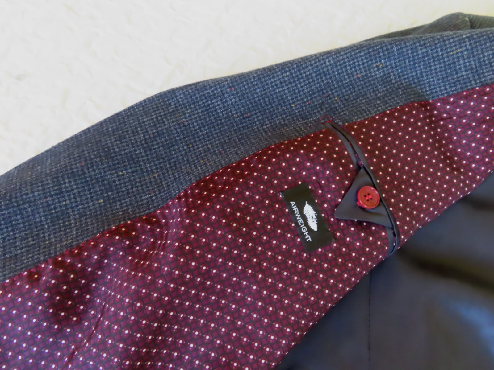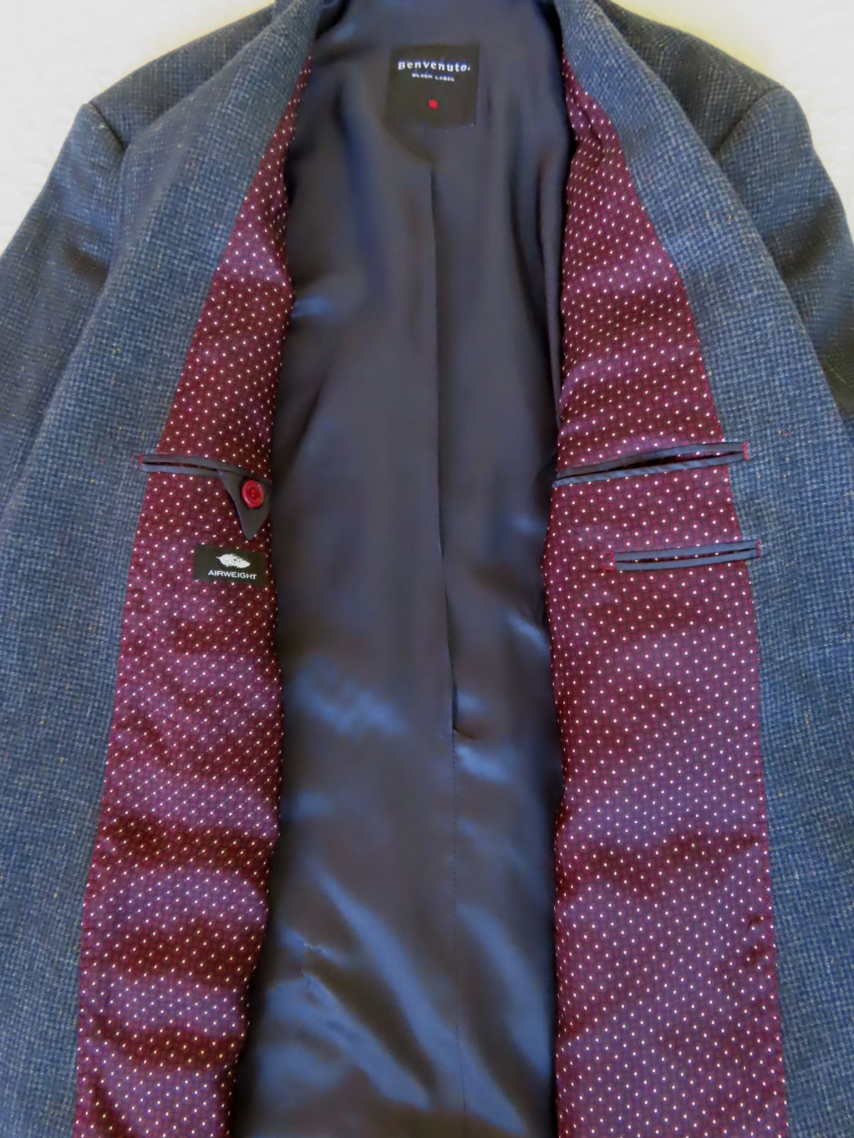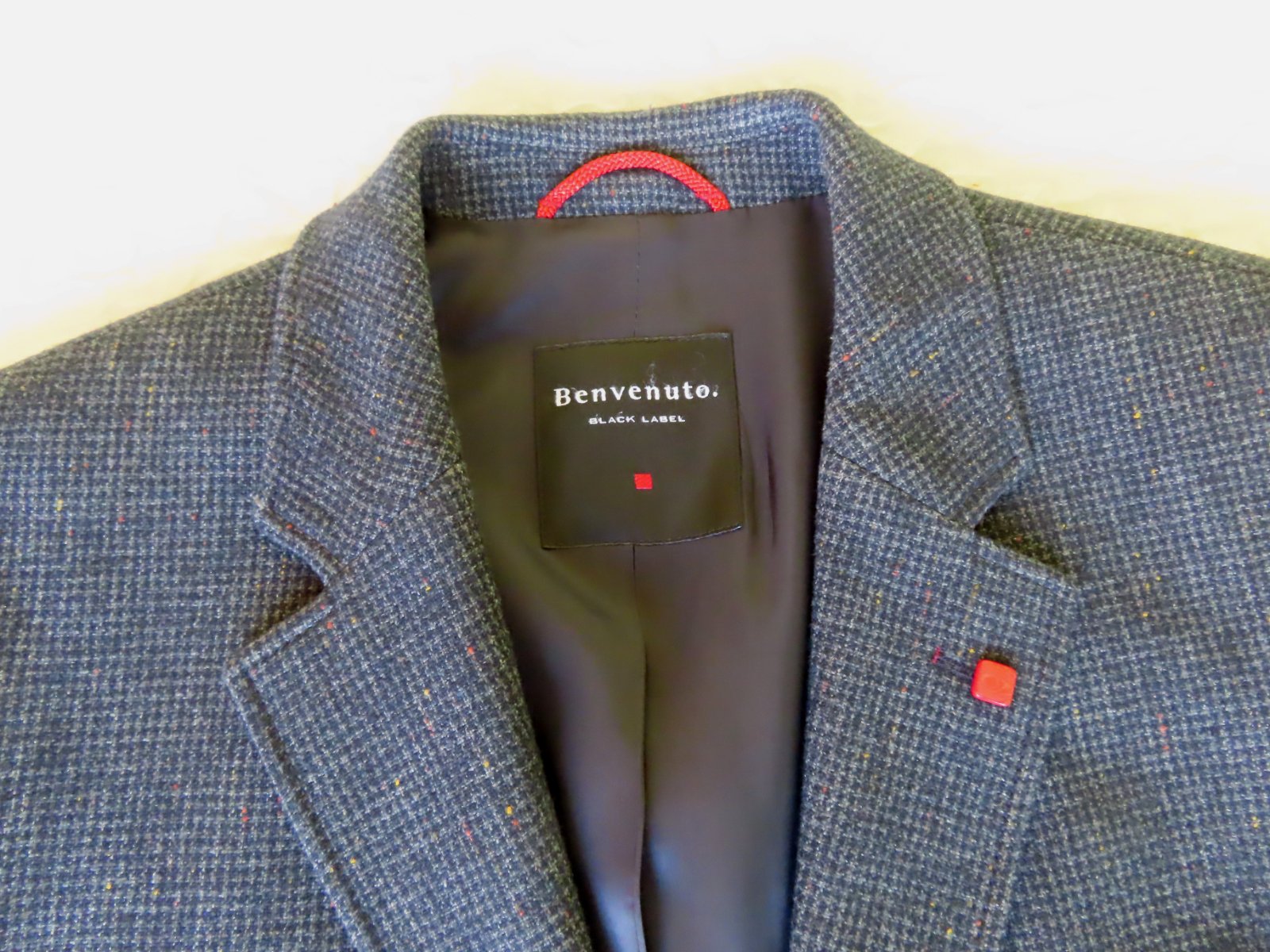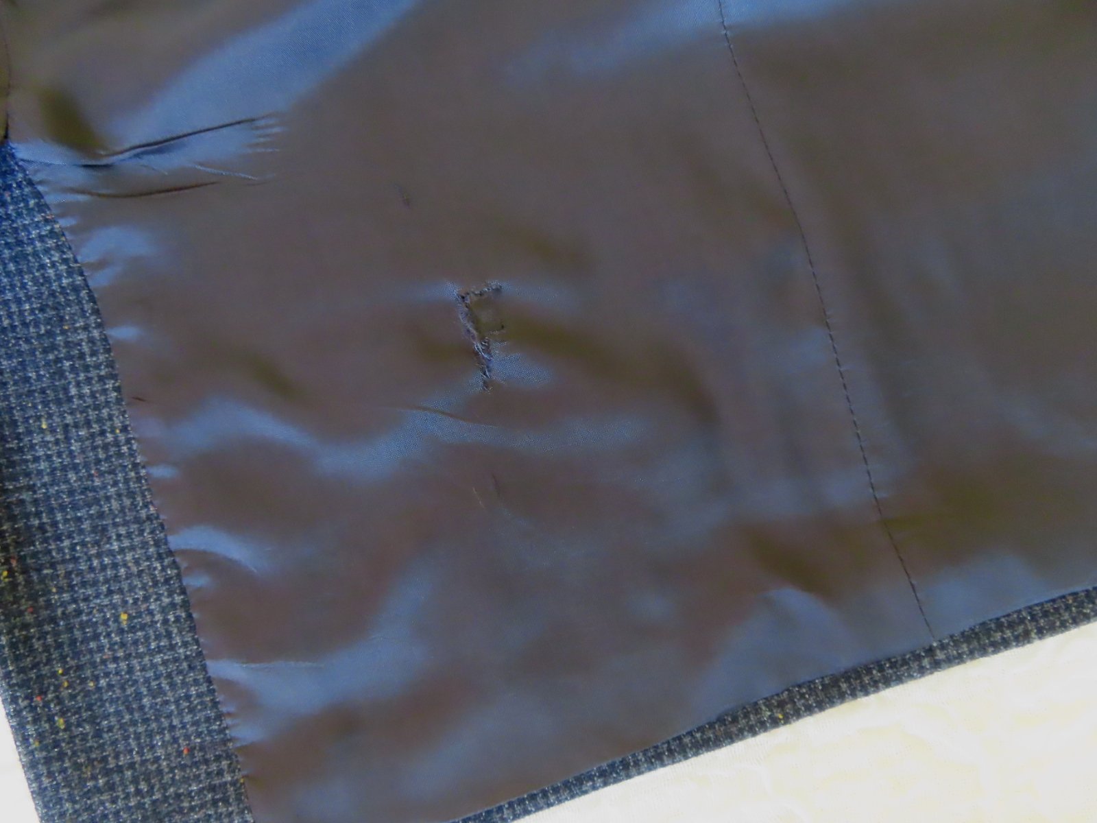Sako nosené, veľmi dobrý stav, ale upozorňujem že vzadu na podšívke je malé zatrhnutie od vešiaka - viď posledná fotka, nijako nevidieť pri nosení, zohľadnené v cene.