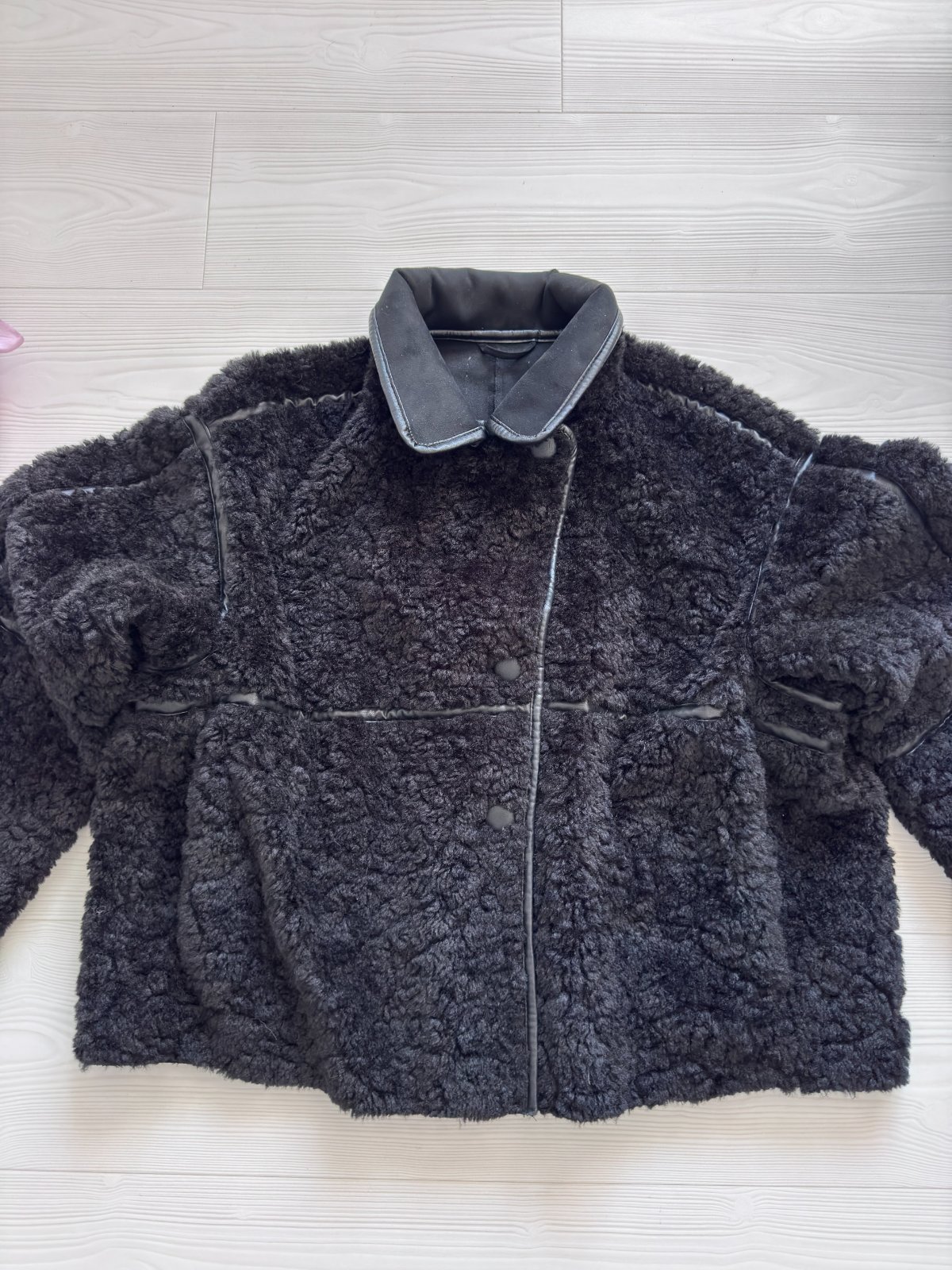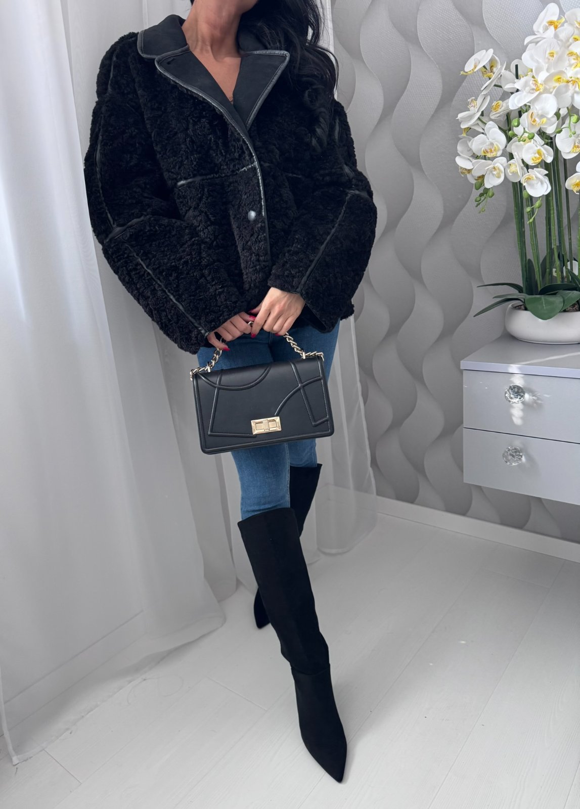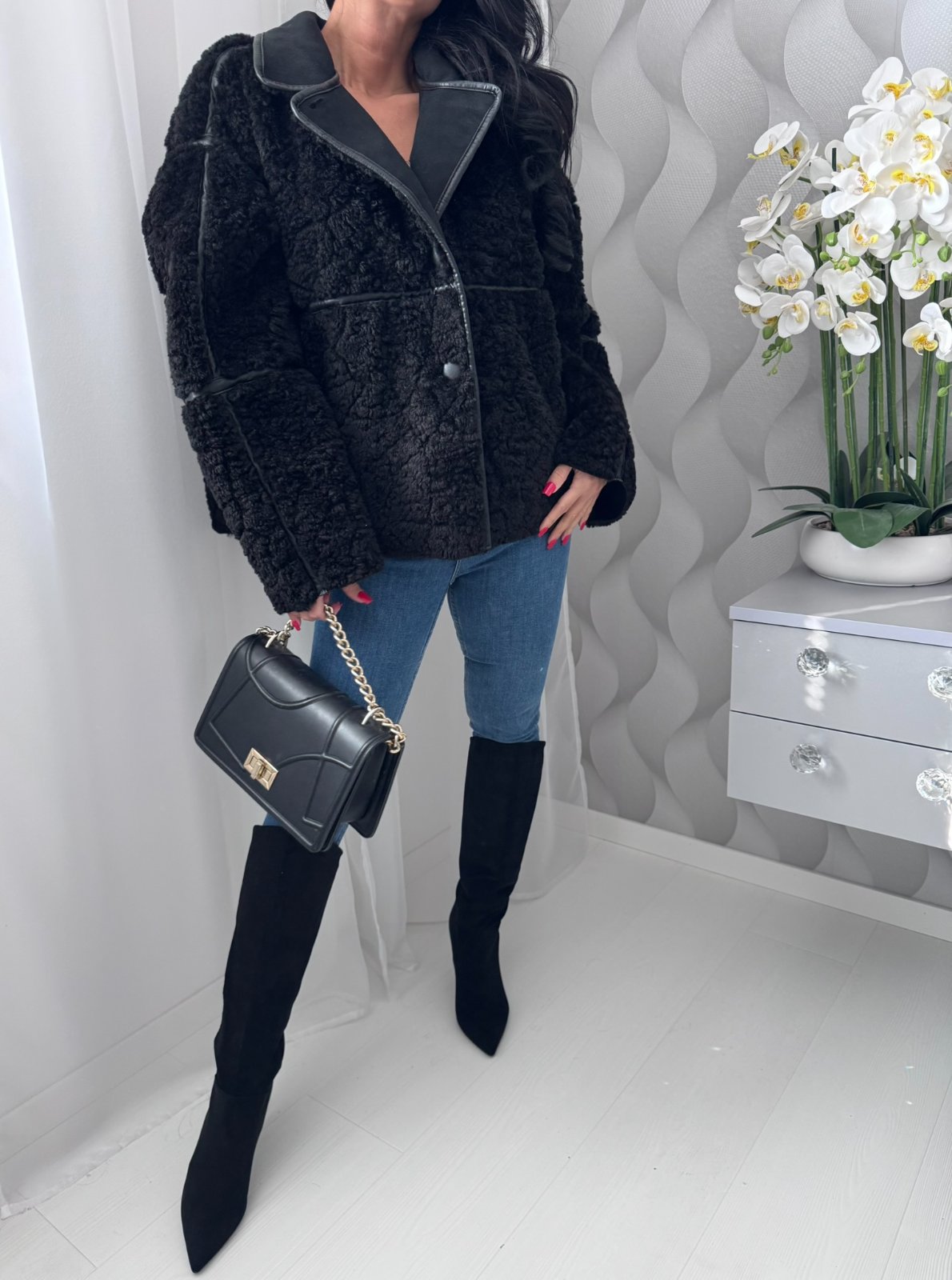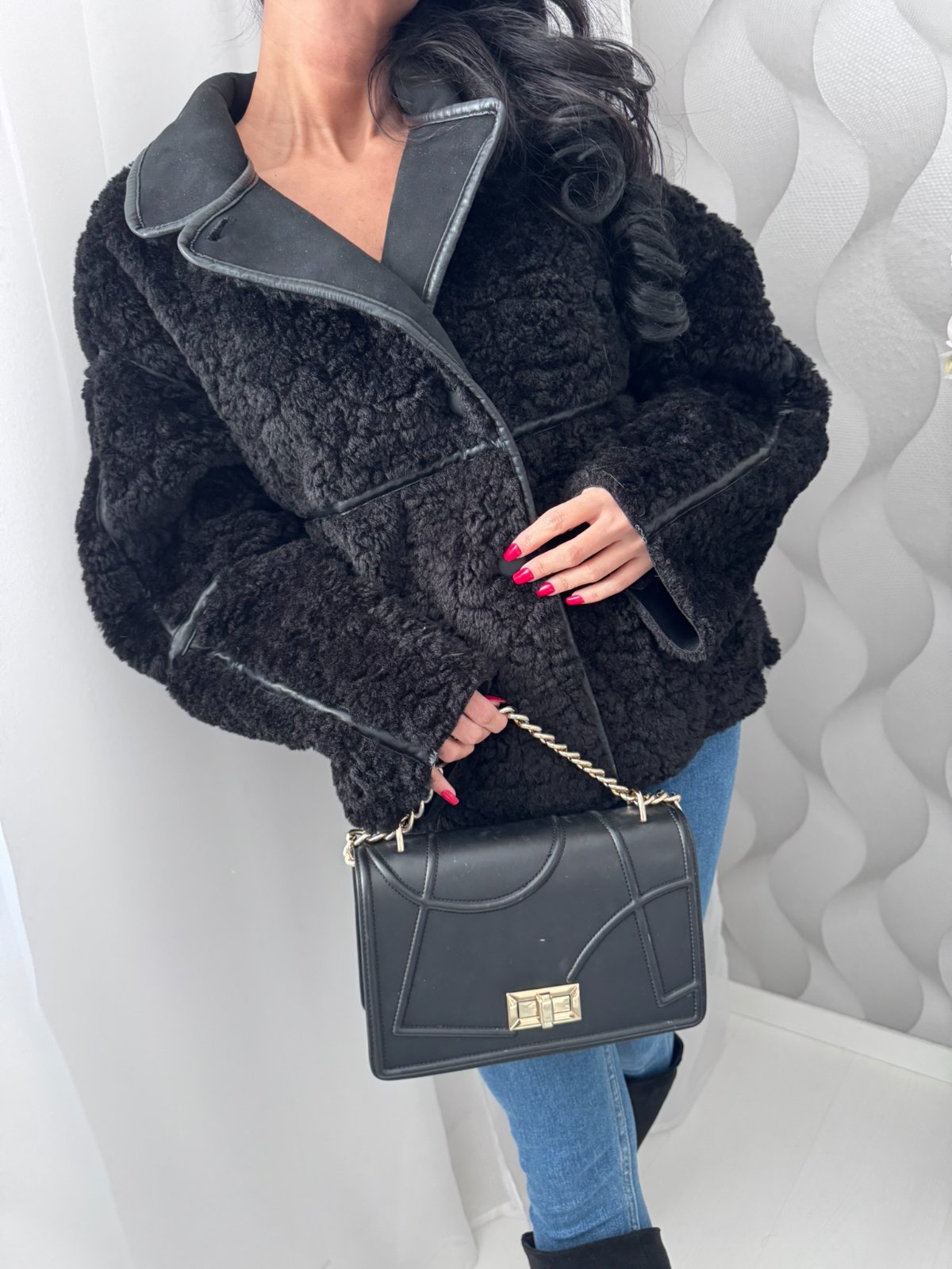 Bunda z mäkkého plyšu s detailmi s povrchovou úpravou.