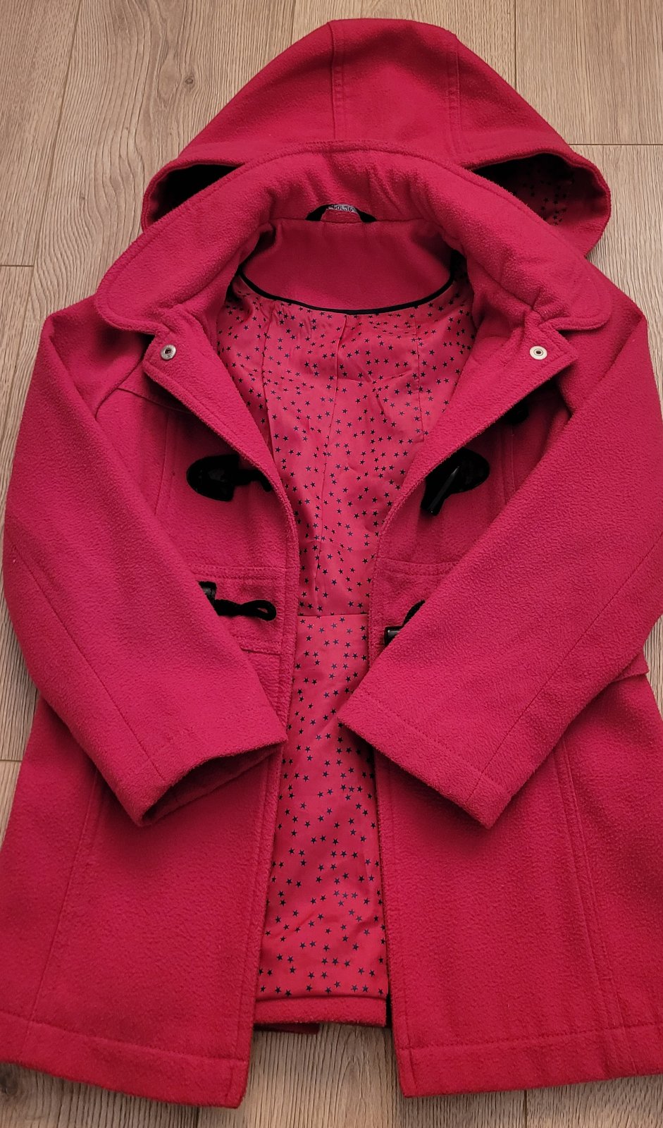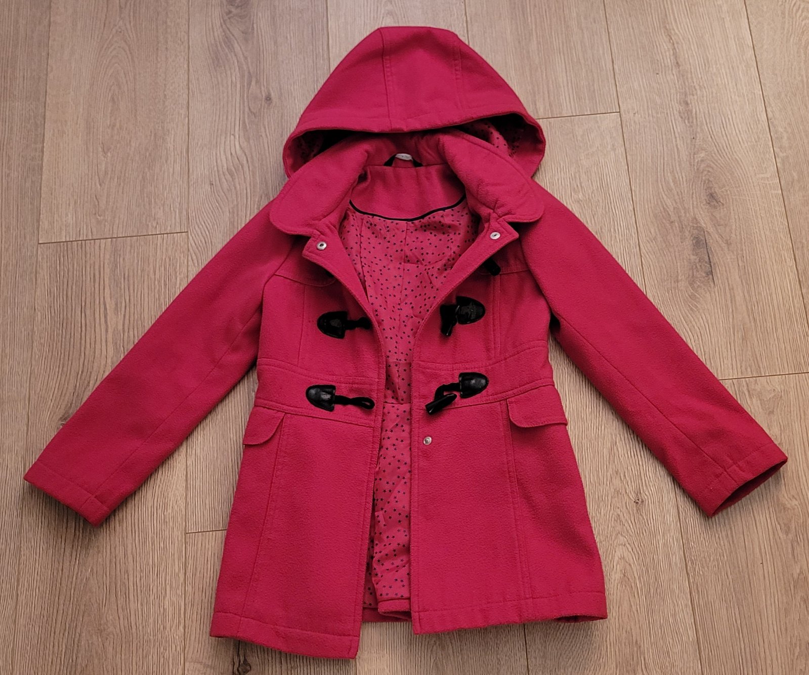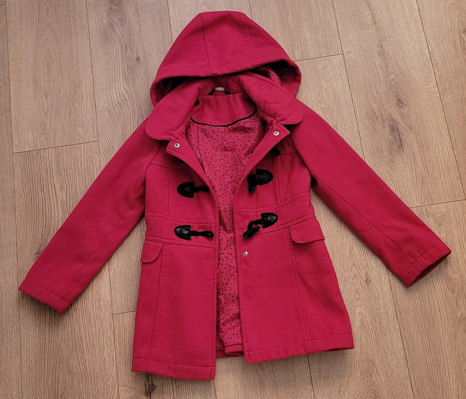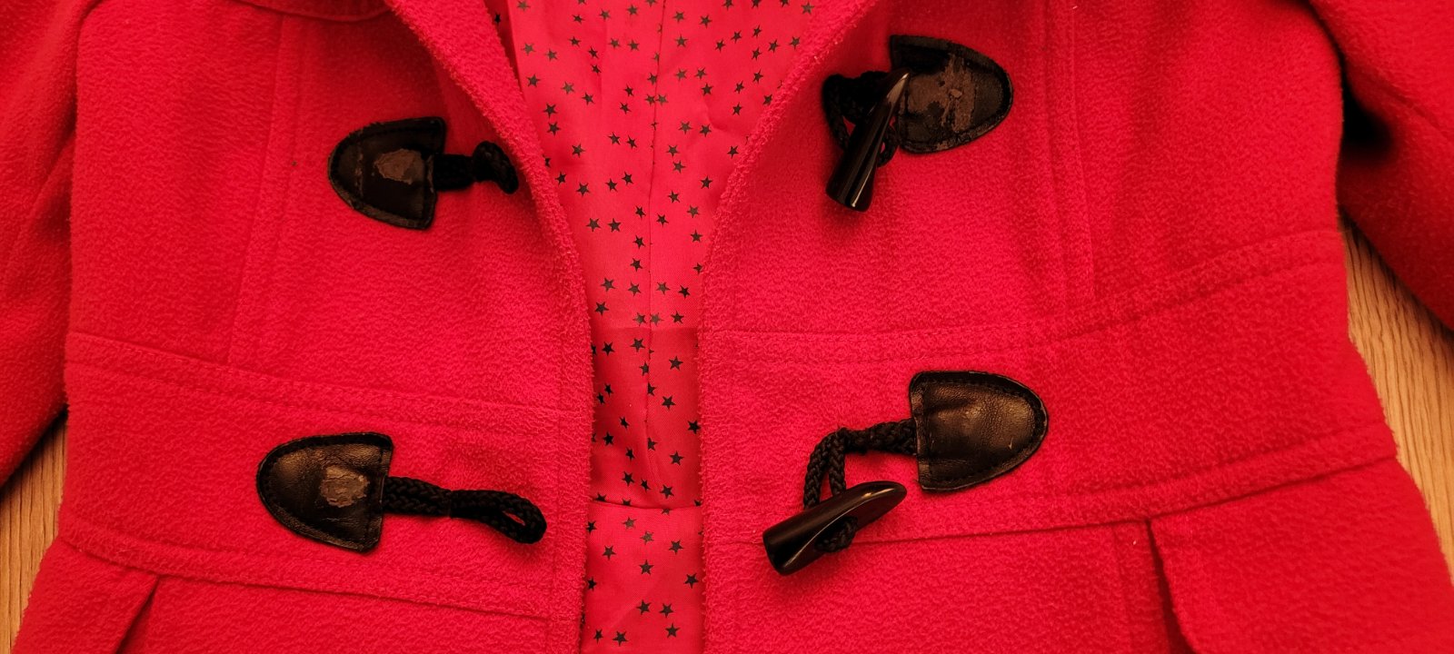 Používaný kabát v dobrom stave, má známky používania. Používanie vidno na zapinani, vid. foto. - osuchana koze koženka
