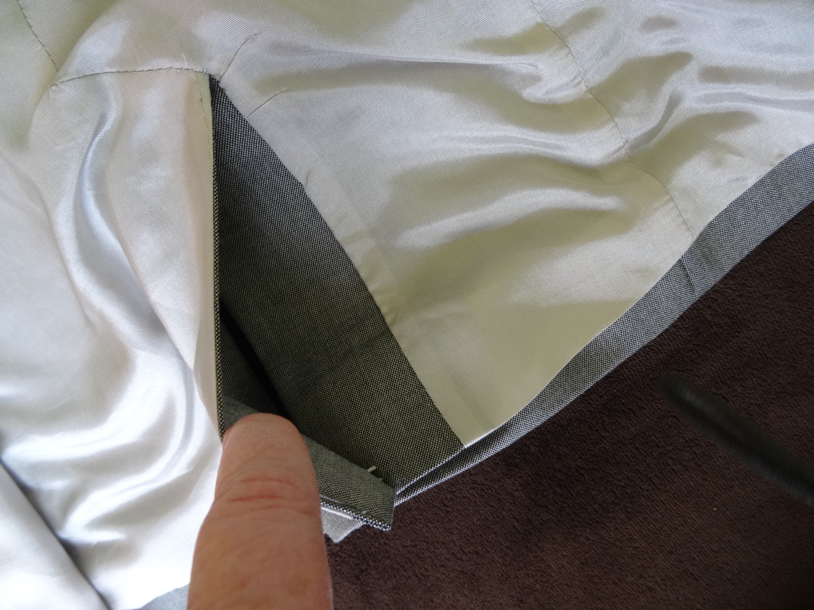 Sako je kvalitné, krásne, podšité. Vzadu rázporok, ešte nie je otvorený.