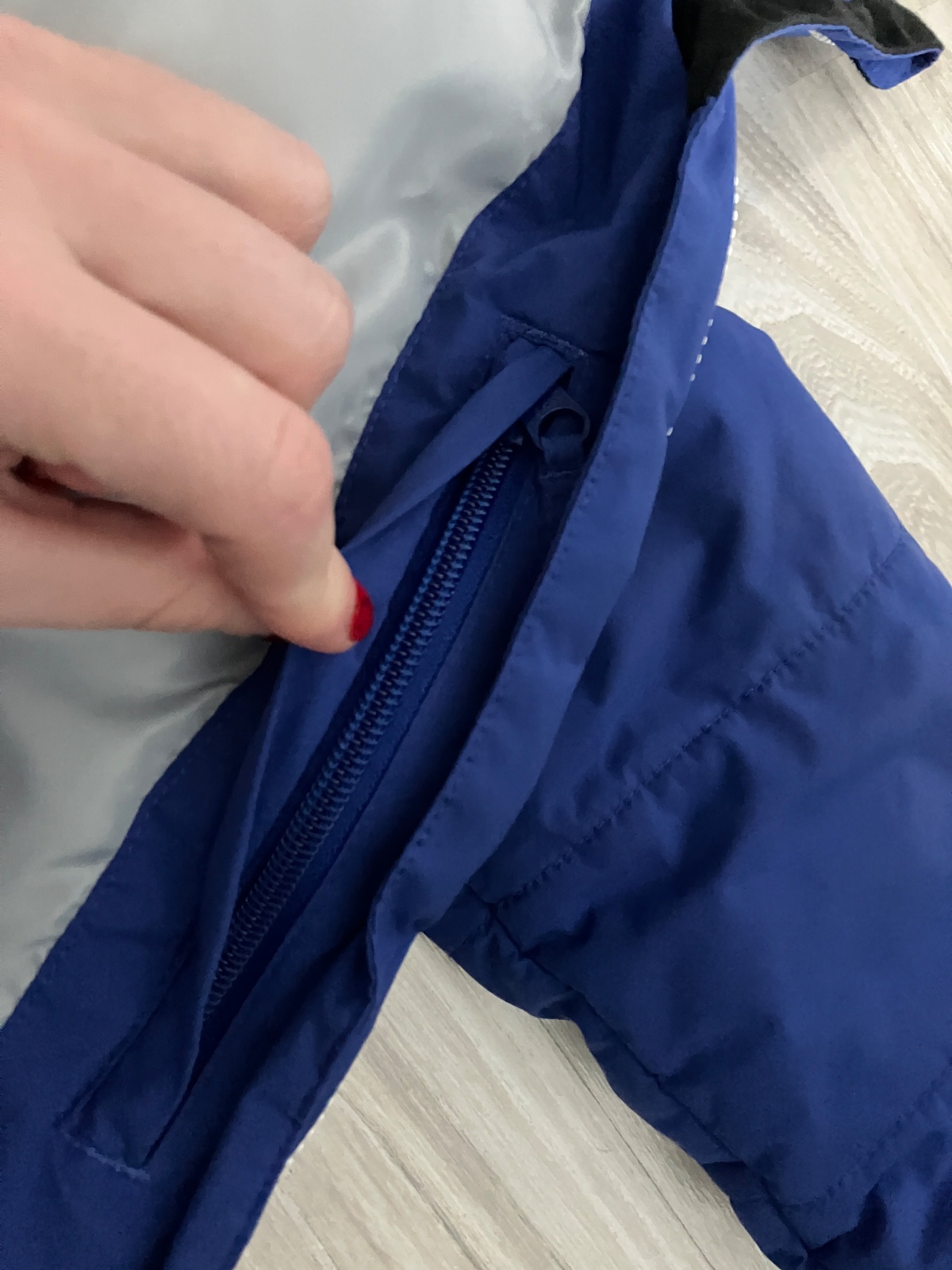 Veľkosť XS, parádny stav, minidierka pri krku (posl foto). Odopínateľná kapucňa.