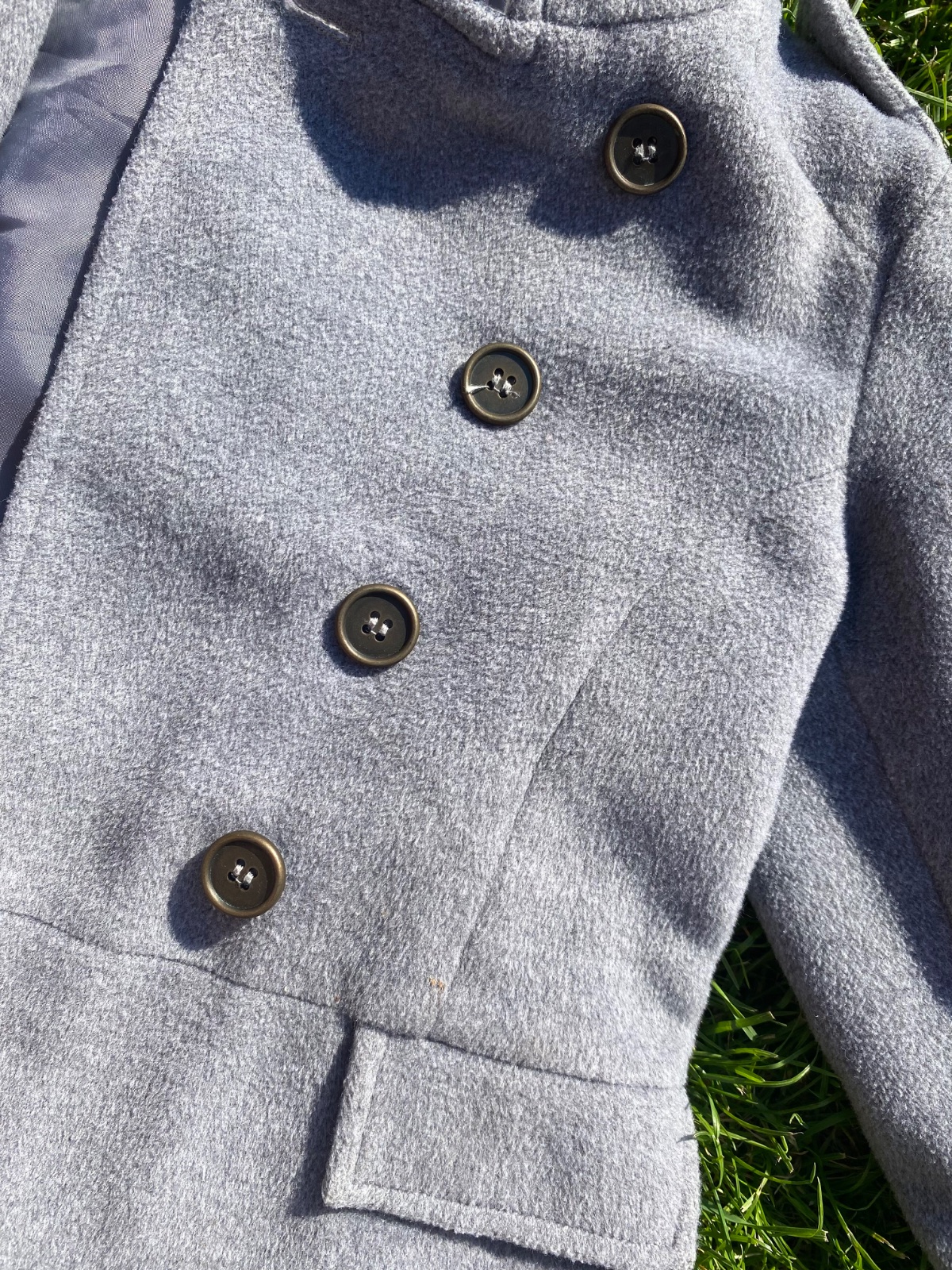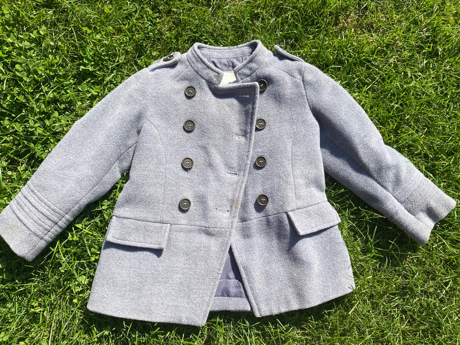 Kabát v dobrom stave, zapínanie na gombíky, kapucňu nemá, na suchú zimu
