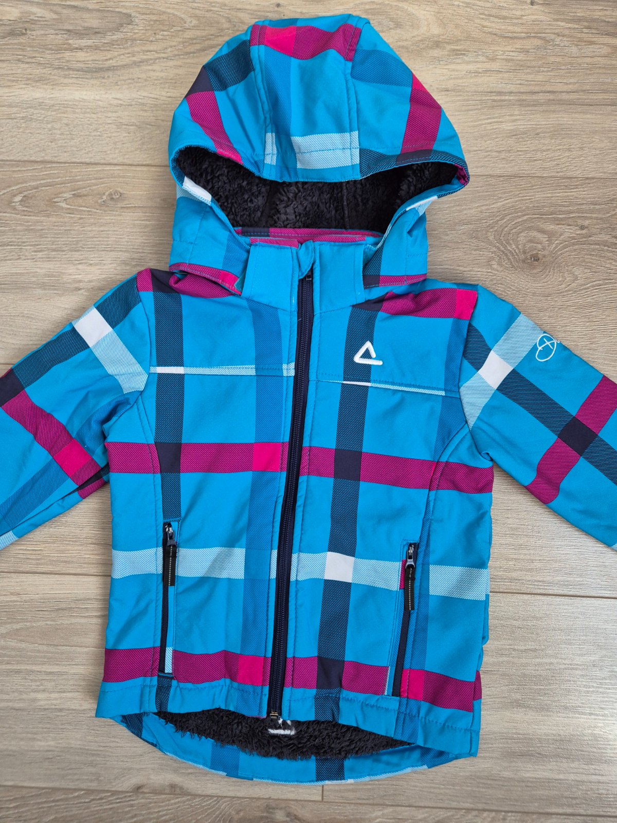 Veľmi teplá zimná bundička do pása a odopínateľnou kapucňou. Vo vnútri aj v kapucni je hrubá modrá kožušinka, v rukávoch nie je.Zapínanie je na zips aj gombíky. Okolo krku aj pása je hrubý patent. ...