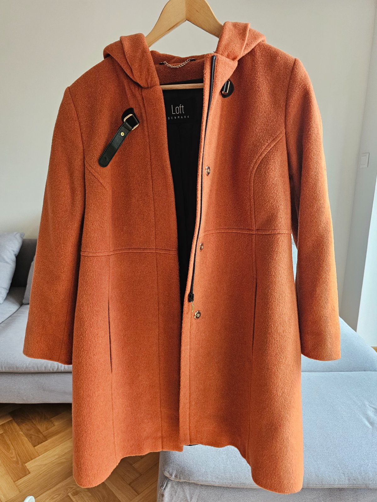 Krásny vlneny kabat s kapucňou Dánska znacka Loft.