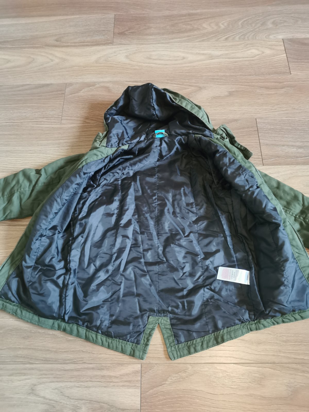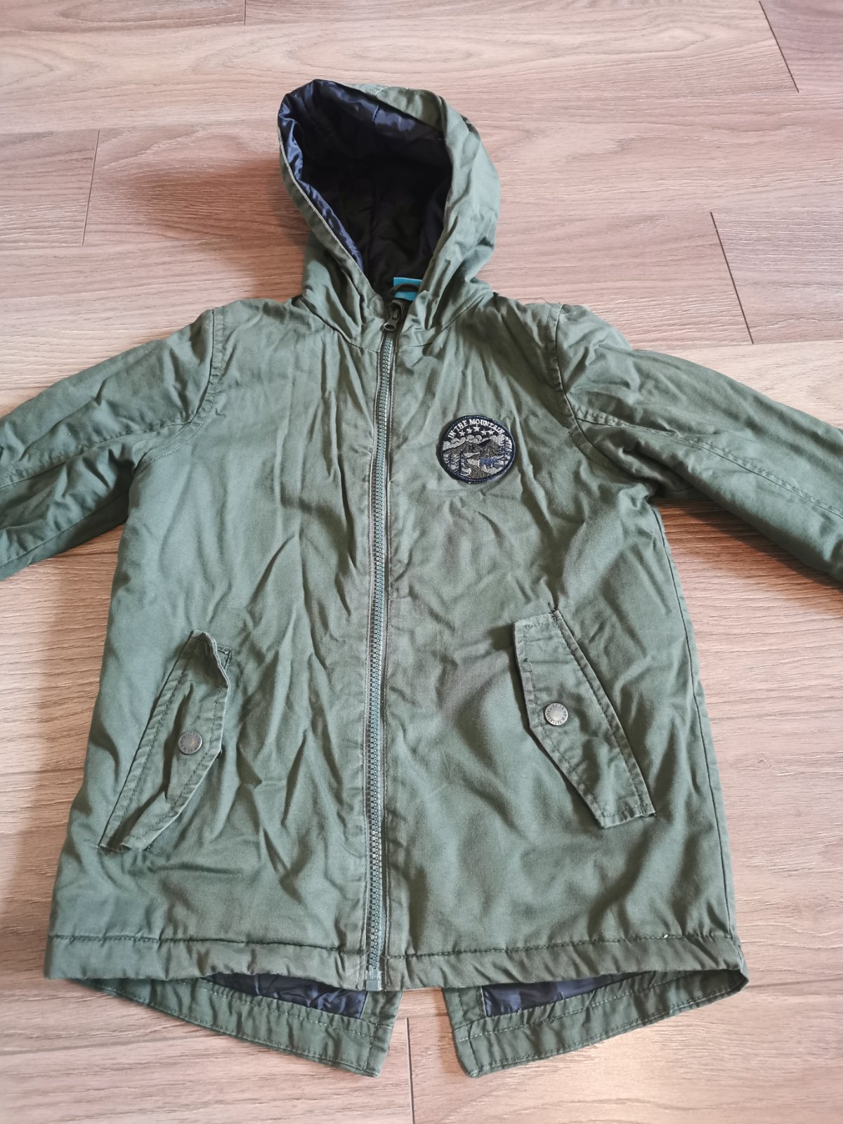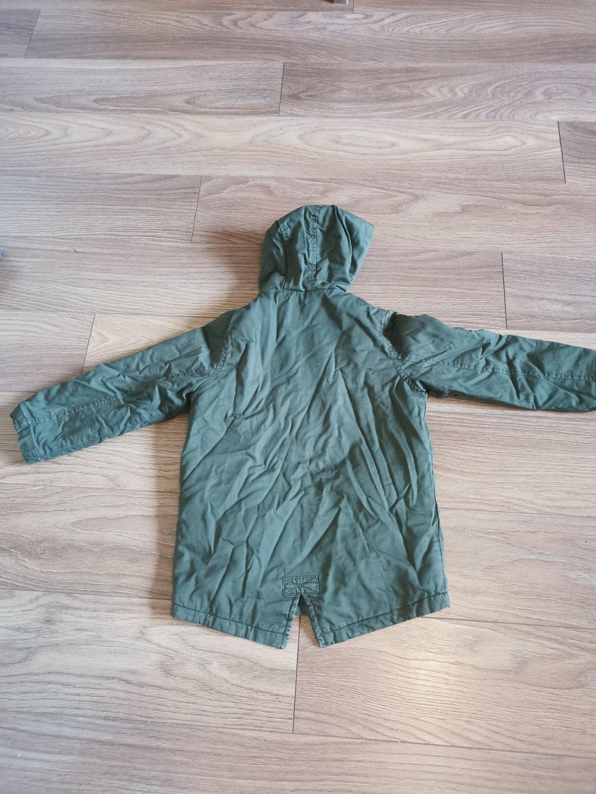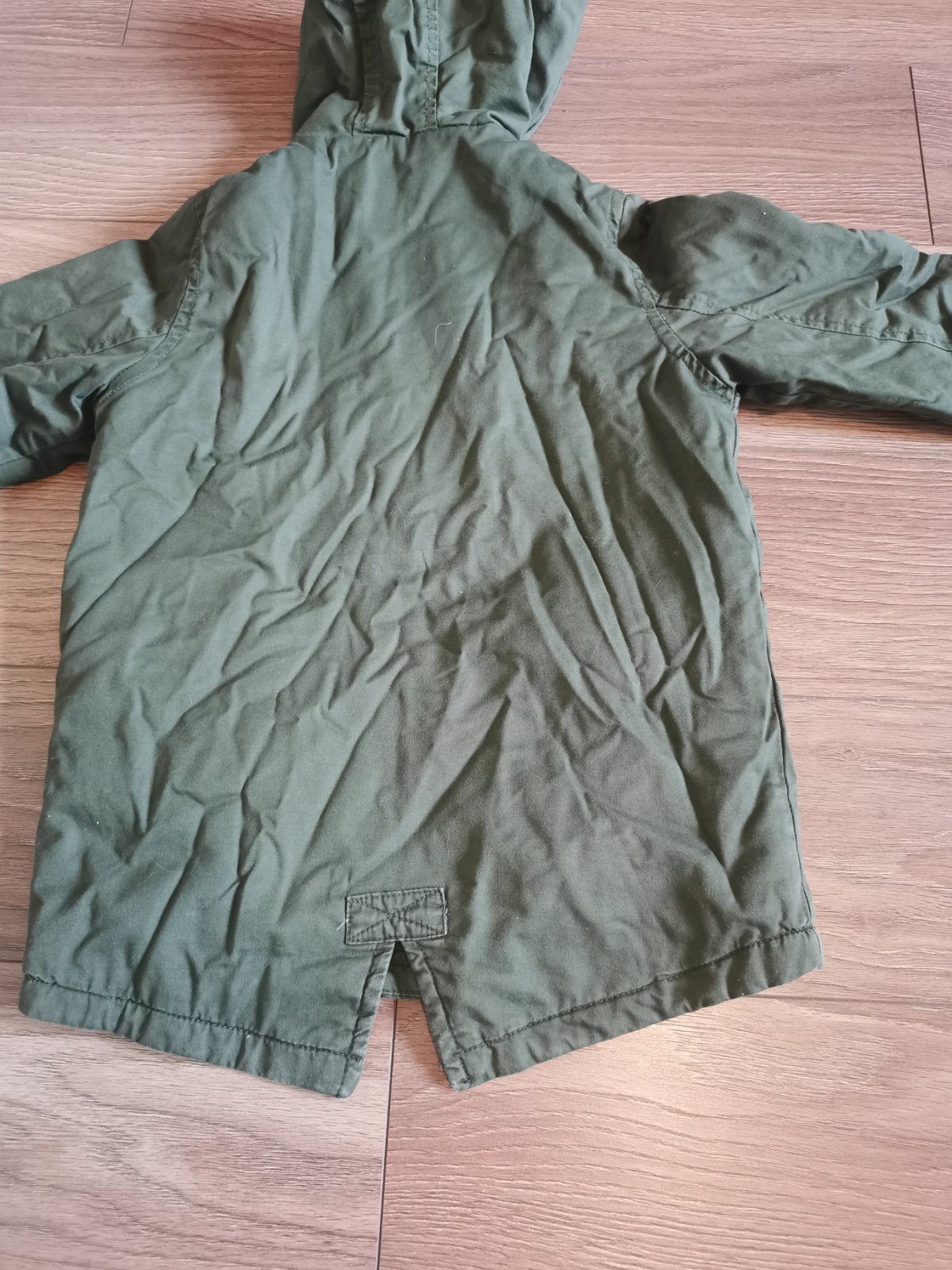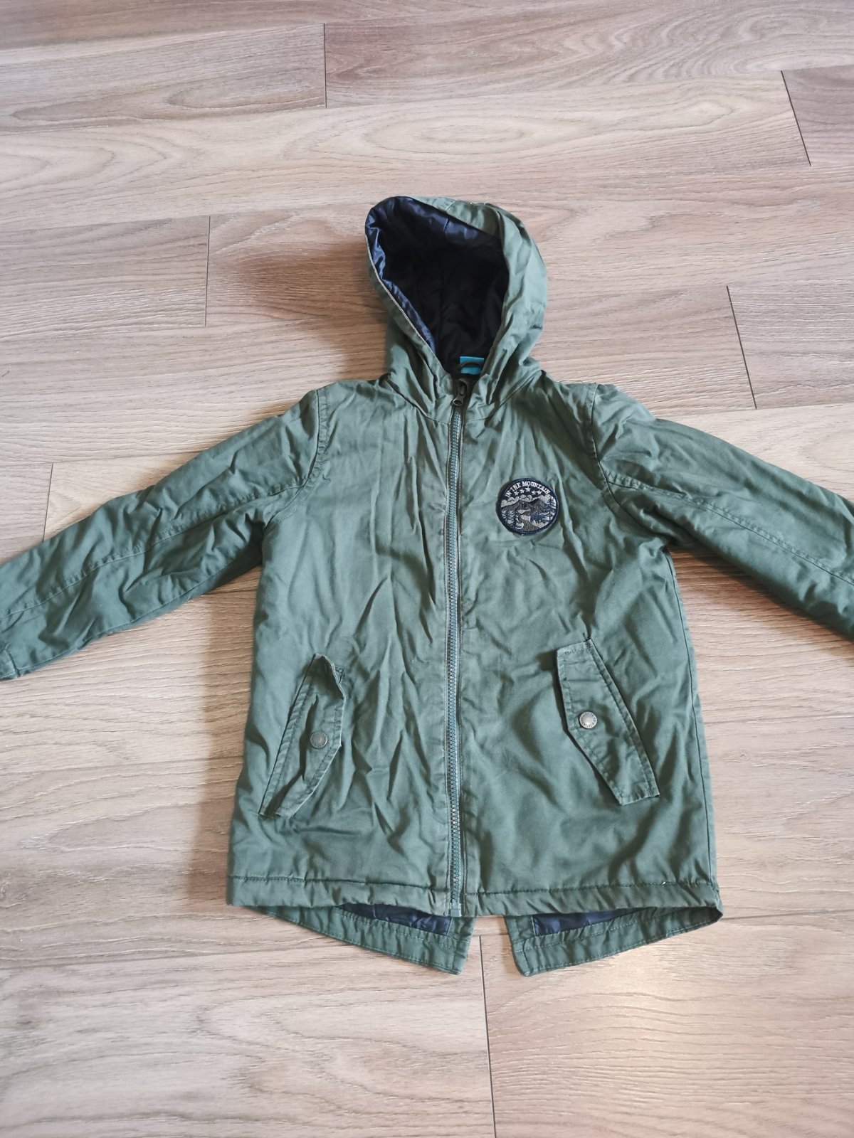 Teplejšia prechodná bunda, veľkosť 122 (rozmery na foto). Málo nosená, syn z nej rýchlo vyrástol. Super stav bez poškodení.