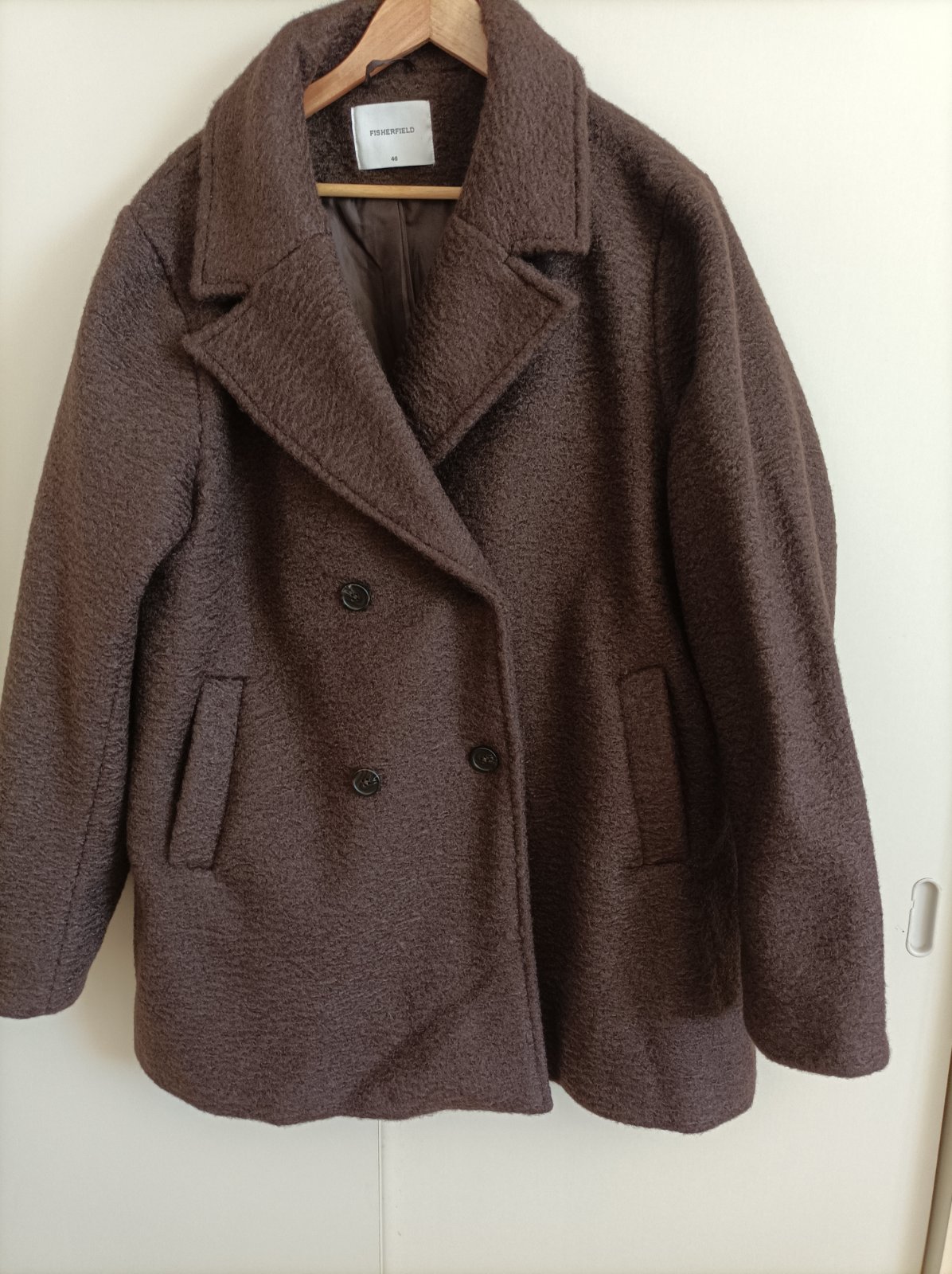 Krátky kabátik,veľmi teplý,raz oblečený,no má dlhé rukávy,čiže na vysokú dámu.