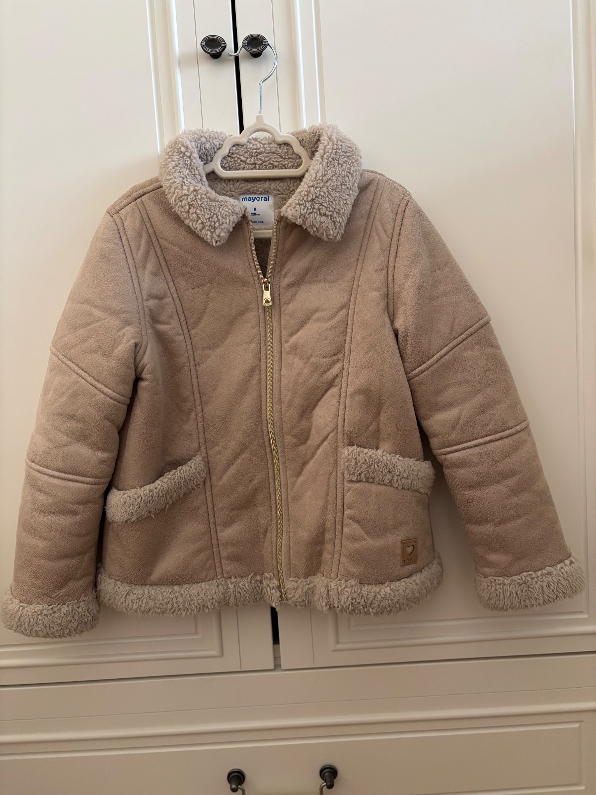 Predám prechodný kabátik do pása veľkosť 128 cm. Celková dĺžka od ramena dolu 46 cm, šírka pod pazuchami 34 cm, dĺžka rukáva od ramena 47 cm. Na 2 miestach bledšie fľaky, nedalo sa mi to odfotiť, a...