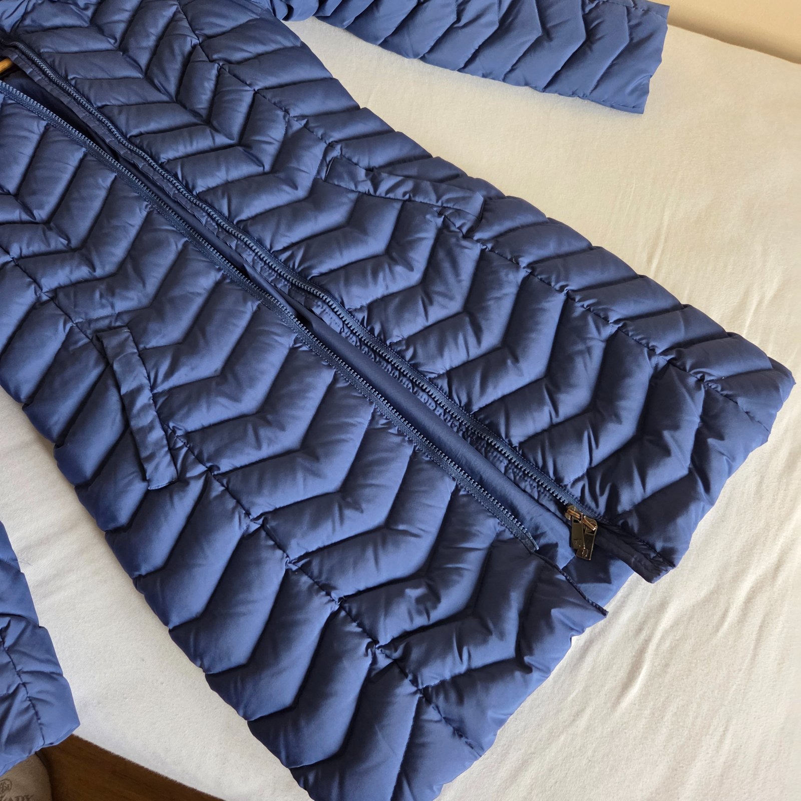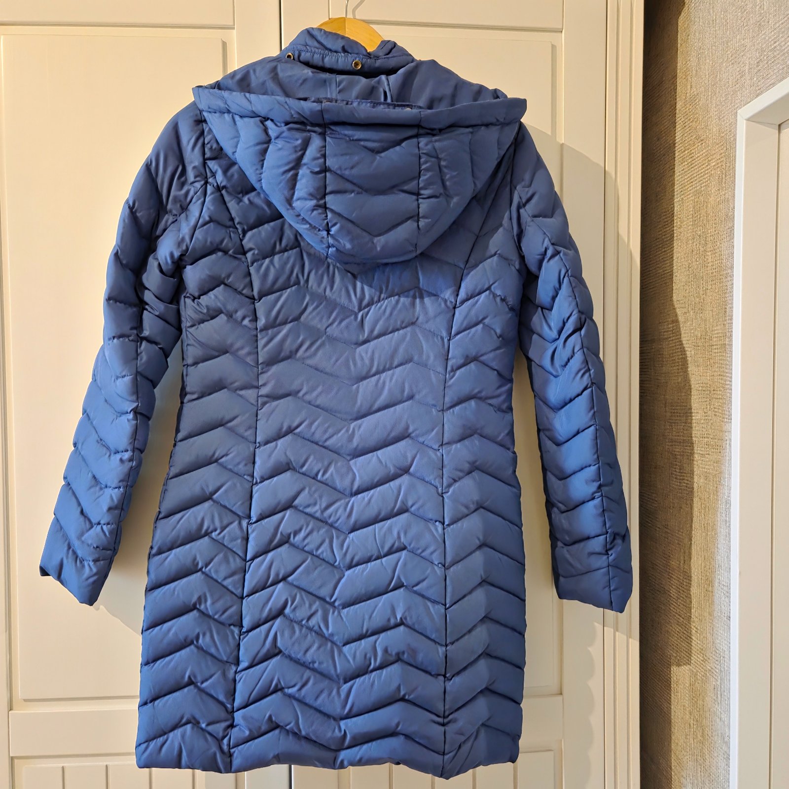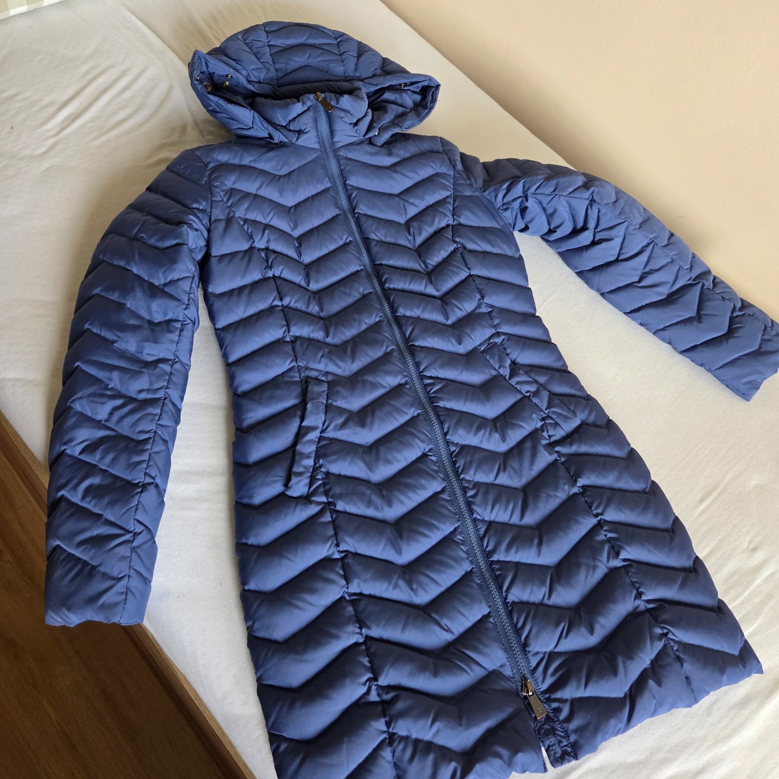 Predám nosenú páperovú bundu dlhšieho strihu v dobrom stave (dĺžka 62cm). Veľkosť je talianska 38 (155/76A), naša 34 alebo XS. Rozmery ny vyžiadanie. Čistená vždy len v čistiarni, bez opasku, s kapucňou. Zapínanie na zips.