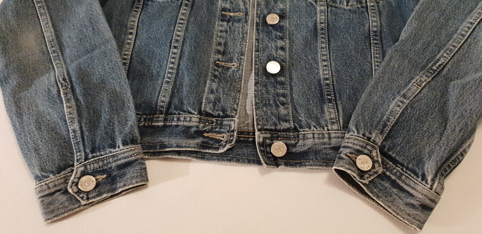 Nadherna vybijana riflova bundicka.Top stav. Velkost XS,S. Znackova znacka rossodisera. Povodna cena 90 eur. Minimum nosena cca 3-4 krat. Sirka v podpazi 40cm, uplne dole 33 cm. Celkova dlzka od kr...