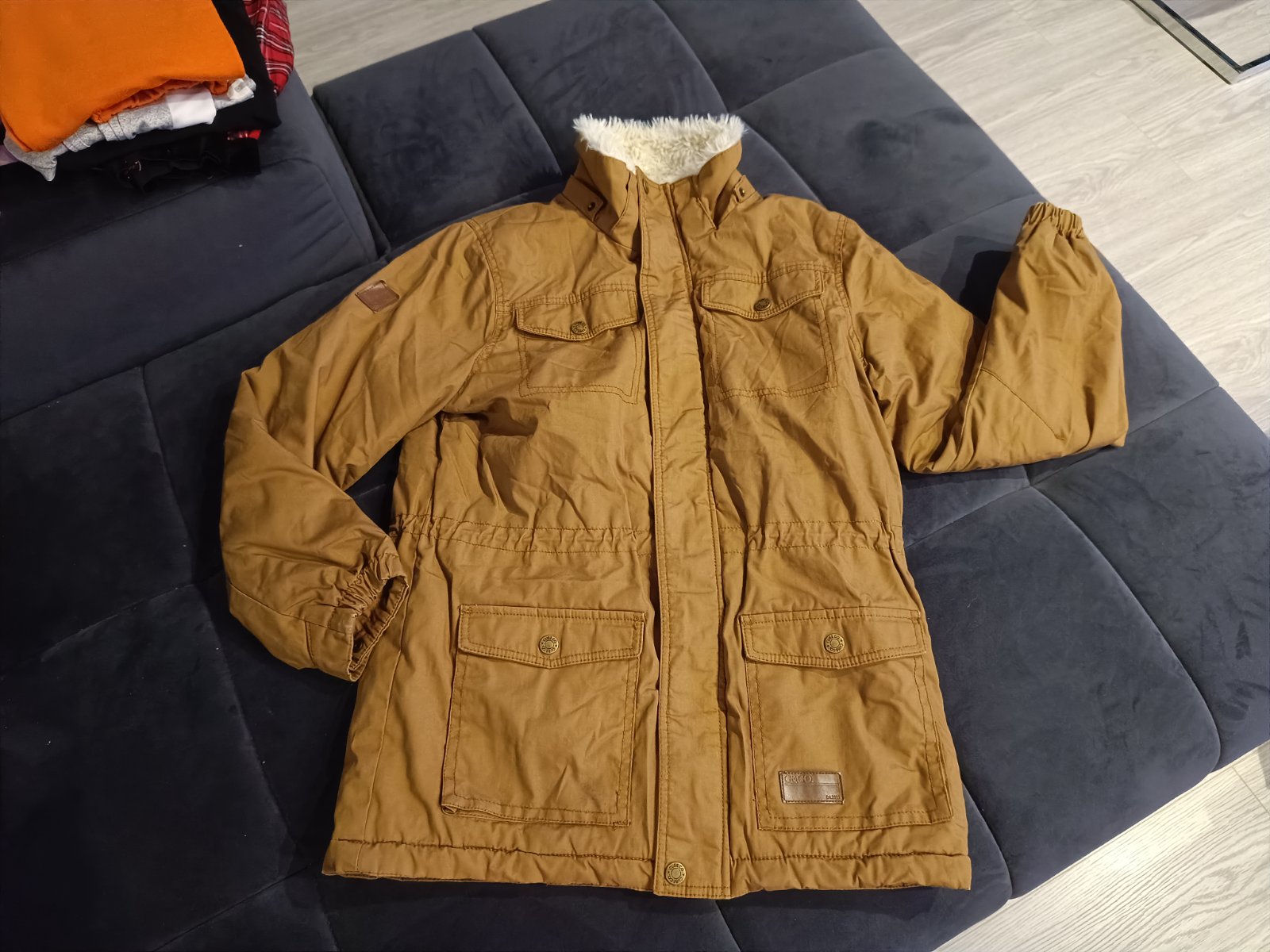 Zachovalá bunda značky 4F. Farba je hnedá v kombinácii s čiernou farbou. Bunda má odjímateľnú kožušinku na kapucni, my sme bundu nosili bez kožušiny, na rukávoch sú patenty proti podfuknutiu, v pá...
