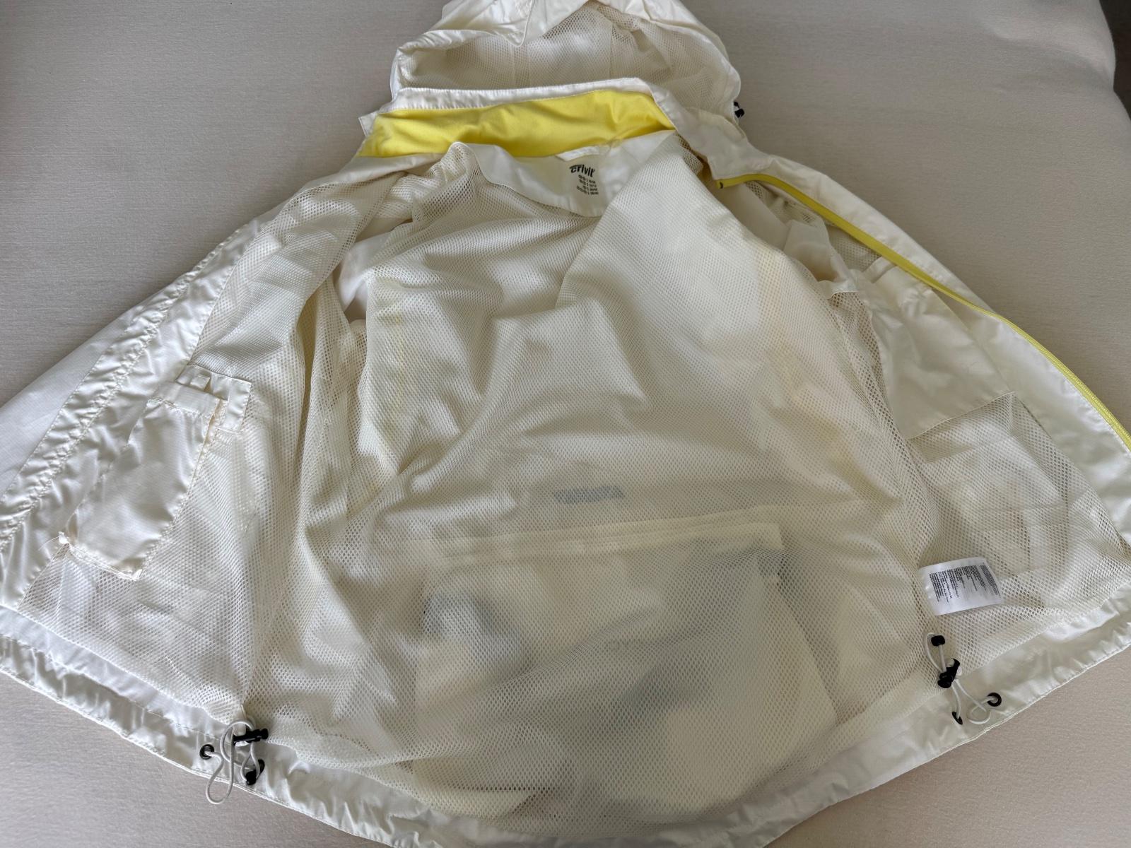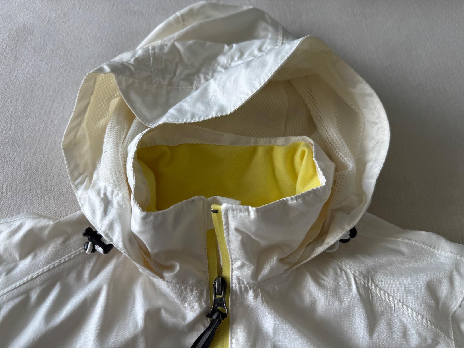Sportova bunda matovo-zltej farby. S kapucnou, niekolkymi vnutornymi vreckami na zips a viacerymi detailami. V top stave. Velkost sedi.