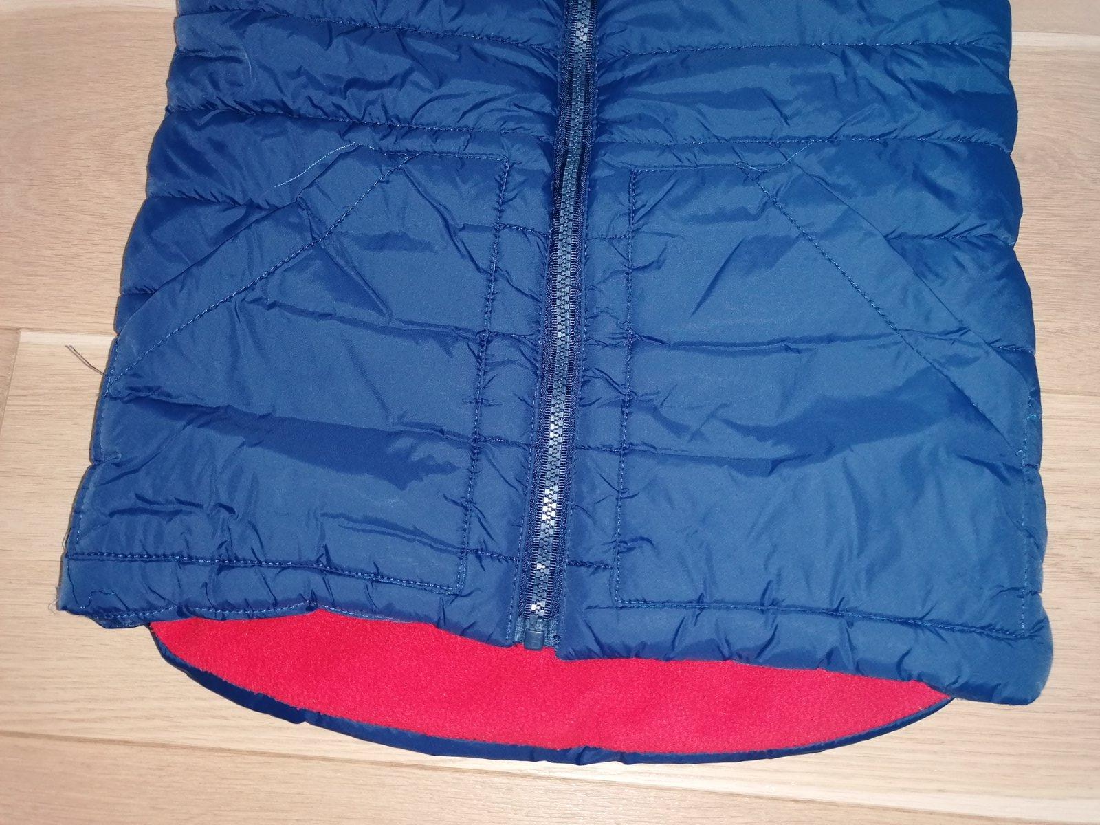 Zateplená vesta zn. GRACE veľ. 128, 100% polyester, farba tmavomodrá vnútro červené, kapucňu žiaľ už nemám.