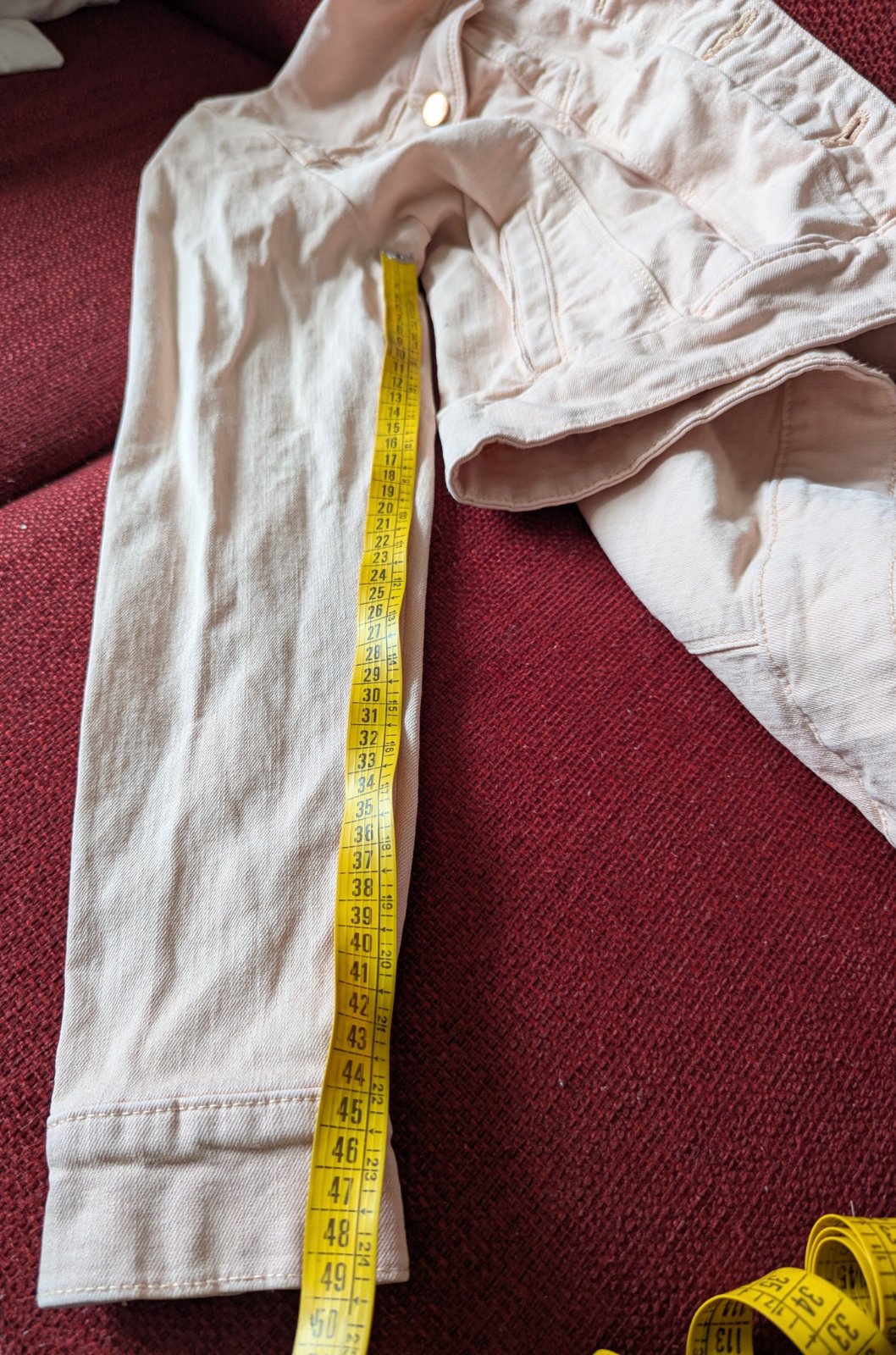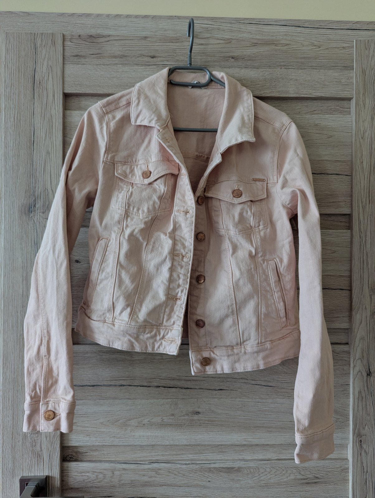 Krásna marhuľová riflová bunda, top stav, málo nosené. Bez fľakov, bez dier, bez poškodení, jedine odstrihnutý štítok, takže veľkosť len odhadujem. Miery na foto.