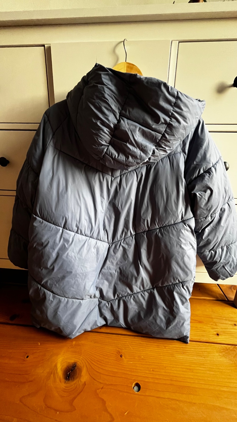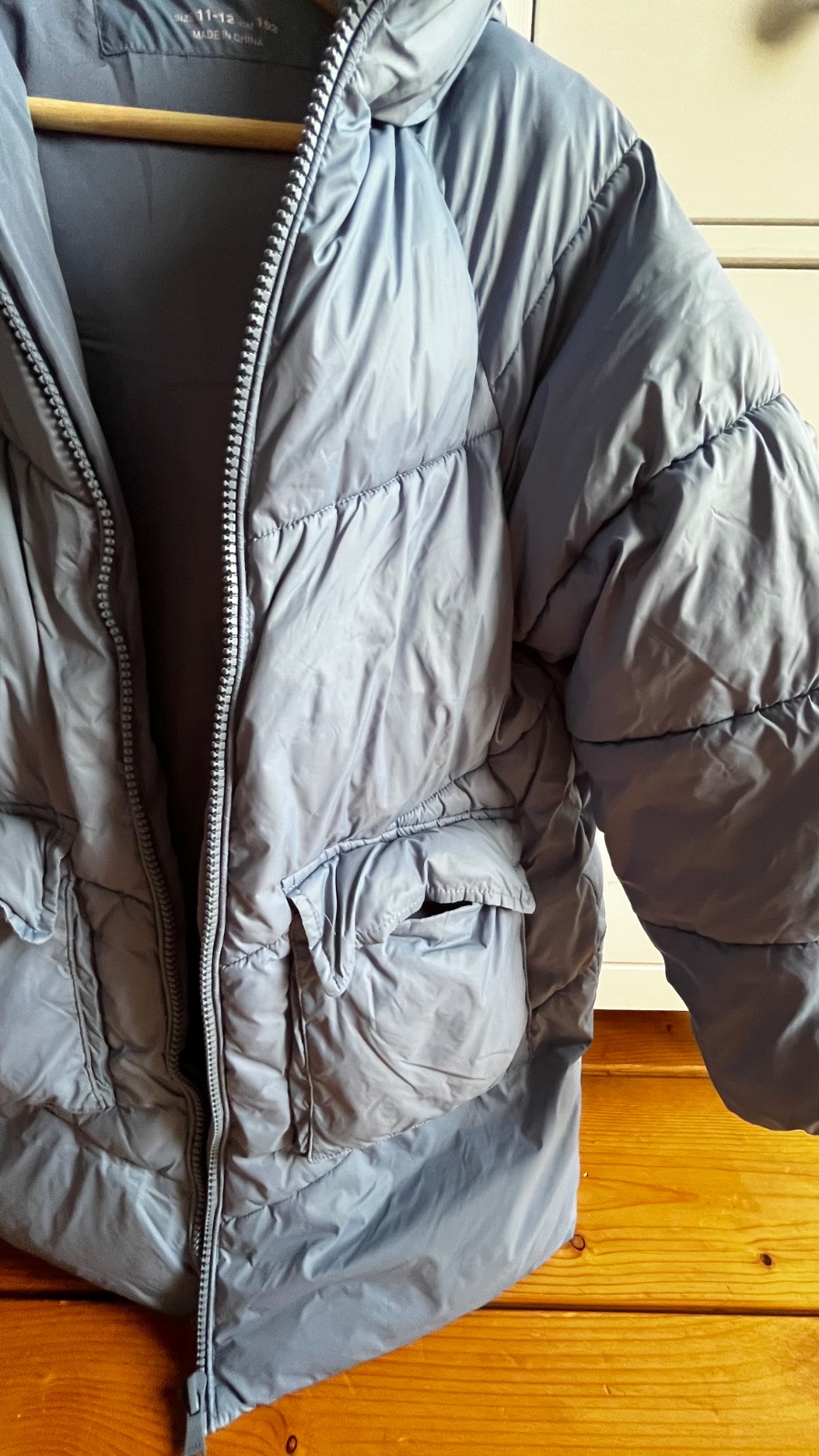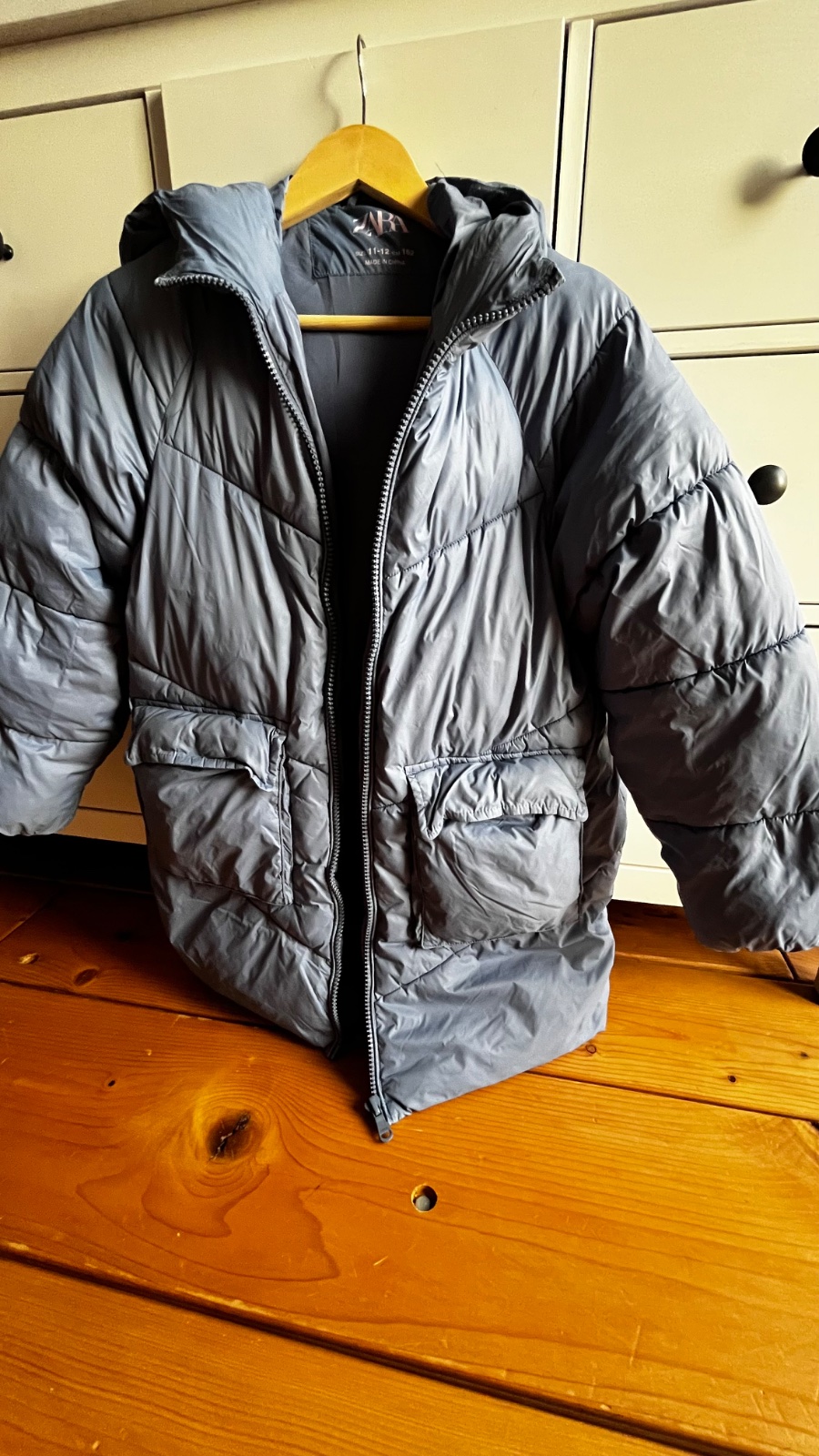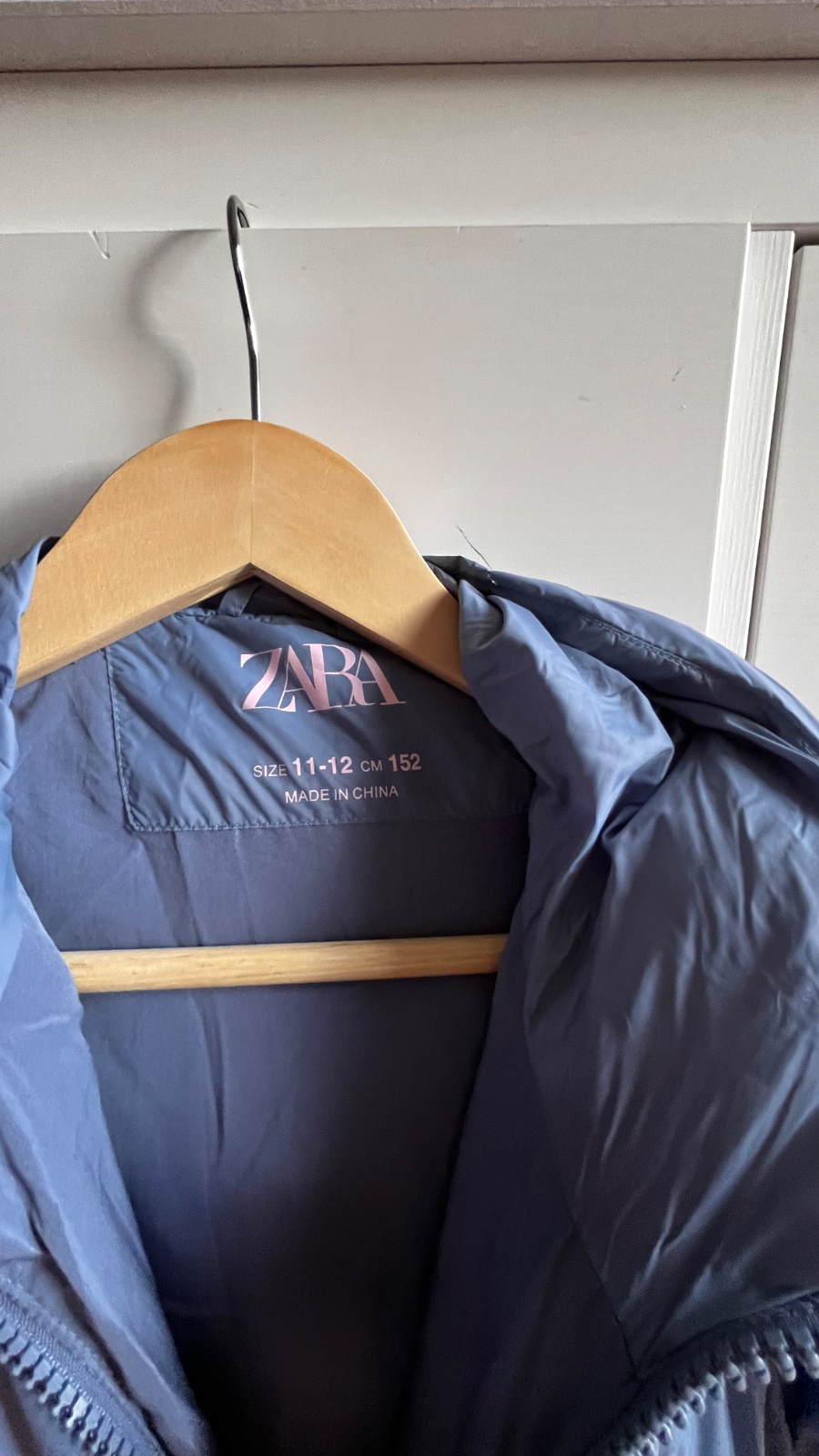 Predám zimnú bundu, zn. Zara, veľkosť 152. Bledomodrej farby, zapínanie na zips, 2 funkčné vrecká, kapucňa napevno. Nie je páperová. Opratá, vo veľmi dobrom stave, bez poškodení, nefajčiarske prostredie. Farbu sa nepodarilo zachytit, je belasa bleducko modra.