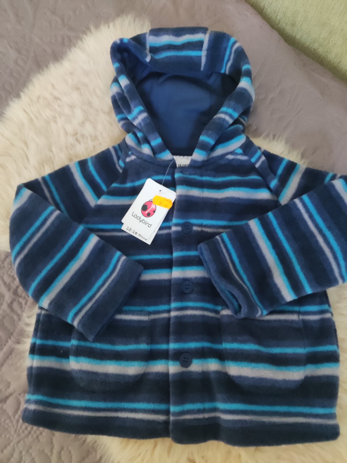 Predám peknú prechodnú bundu vo veľkosti 86 (dĺžka cca 37cm). Má malinký kaz (viď foto). Cena 6€ + pošta