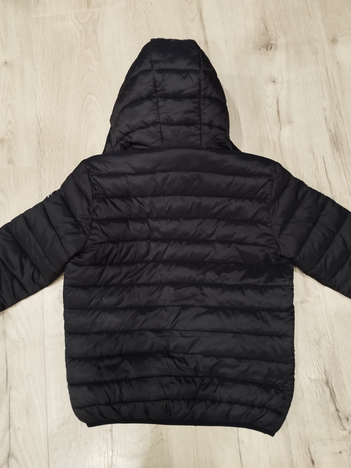 Ponukam čiernu, presivanu bundu . Vpredu pri ľavom vrecku fliacik, a kazdej strane jedno vrecko na zips. Kapucka je na pevno. Velkost je udavana 152, nositeľné už skor predna dlzka 56 cm rukav od...