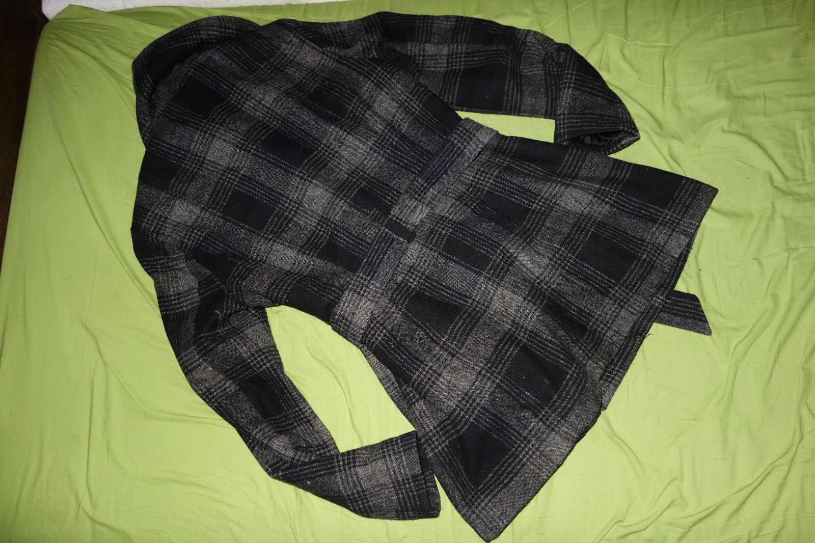 Pekny flausovy kabat vo velmi dobrom stave. Je aj futrovany, takze vhody aj do chladnejsej zimy.