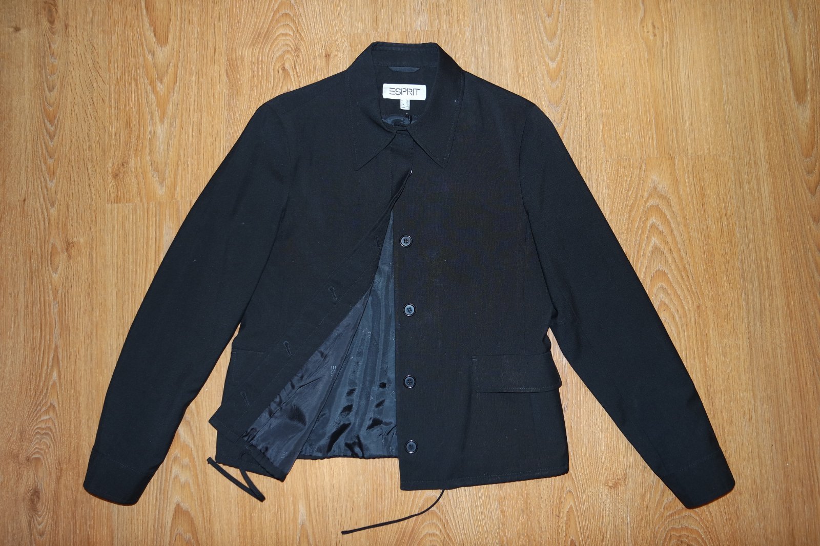 Predám športovo-elegantné sako v grafitovej - tmavosivej farbe Top stav Značka: Esprit Veľkosť: L, materiál: 75 percent viskóza+ 22 percent bavlna + 5 percent polyester - nekrčí sa, pohľadovo vyzer...