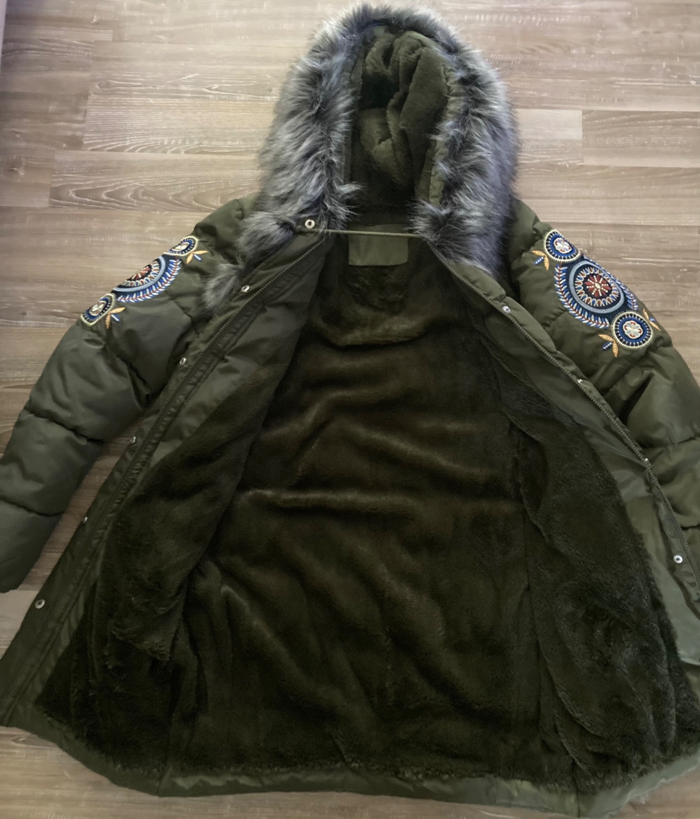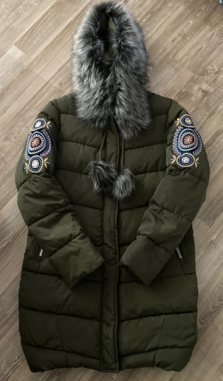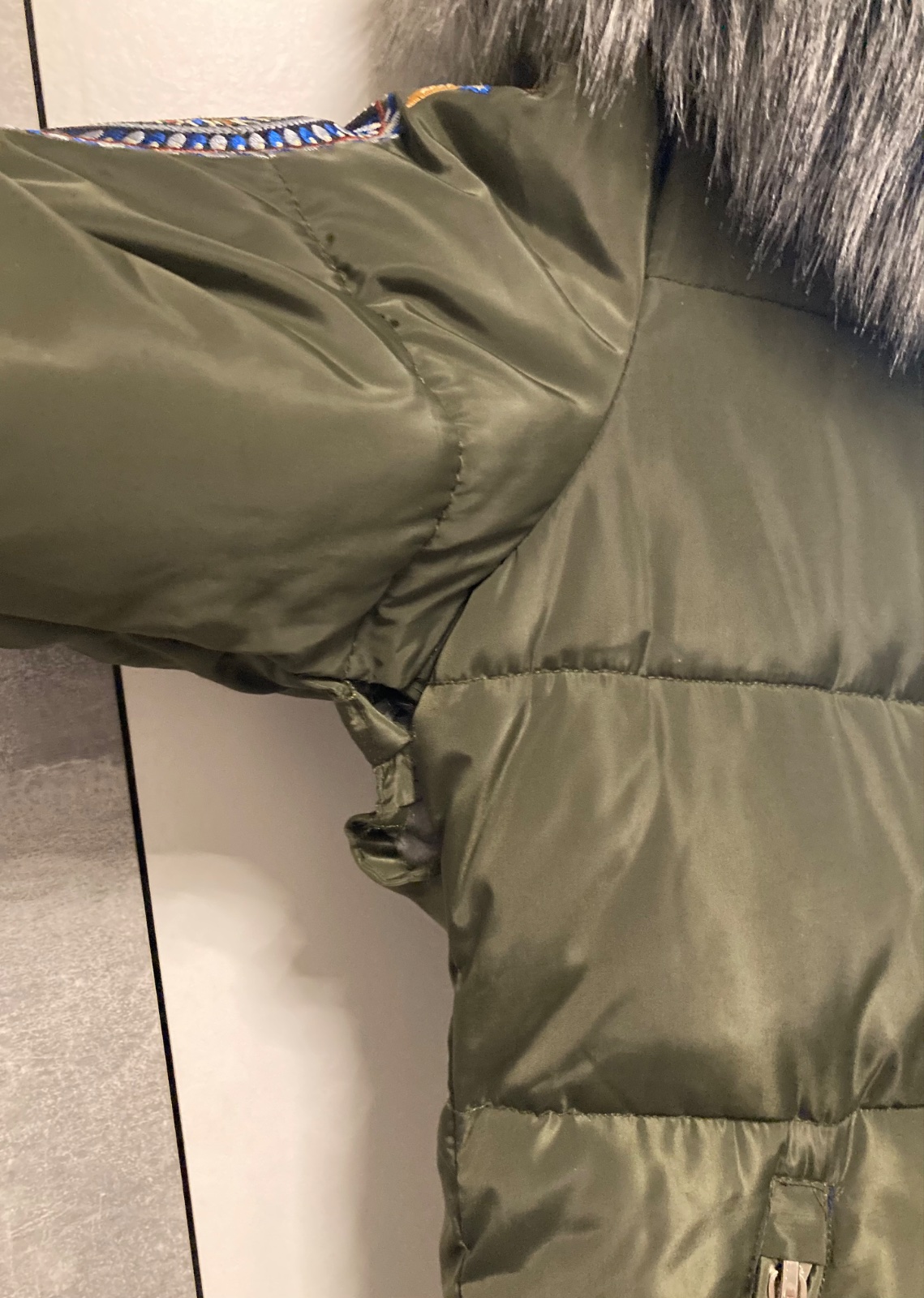 Krásna teplá zimná bunda,vzatá 4-5x.max..vnútro oteplené..farba v skutočnosti krajšia,žiarivejšia ako na foto!treba si zašiť..(posledná foto)!je to len od vonku pri pazuche..od dnu sa to nepára.vonkajšok len treba zašit..šikovná mamina si to obšije...bunda je v Top stave,iné poškodenia nemá len toto,u krajčirky to prešitie bude stát 5€,už som sa informovala..už zohľadnené v cene!cena+pošta.prosim nezjednávať!!!cena už je pevná!bunda bola drahá a je ozaj krásna..+pošta.