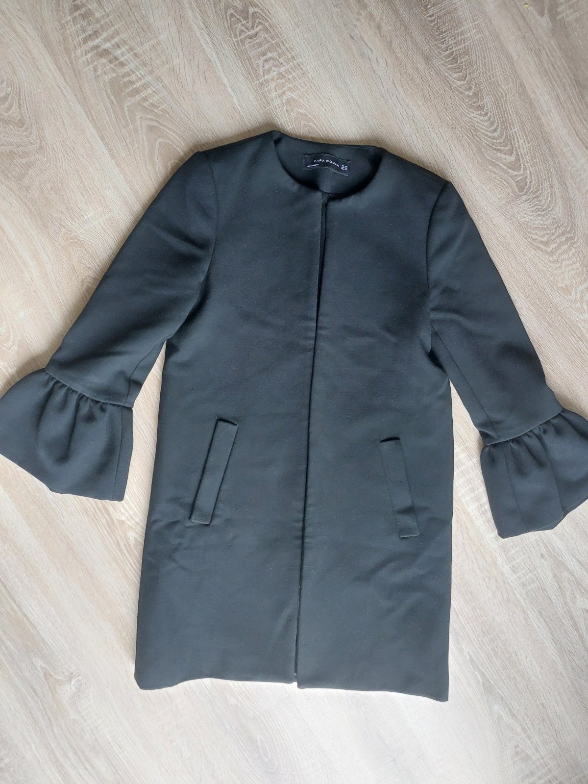 Predám čierny elegantný kabát s 3/4 rukávmi s volánom značky ZARA vo veľkosti XS. Párkrát oblečený, je ako nový. Osobný odber je možný v Bratislave-Ružinove alebo pošlem poštou po prevedení peňazí vopred na účet.