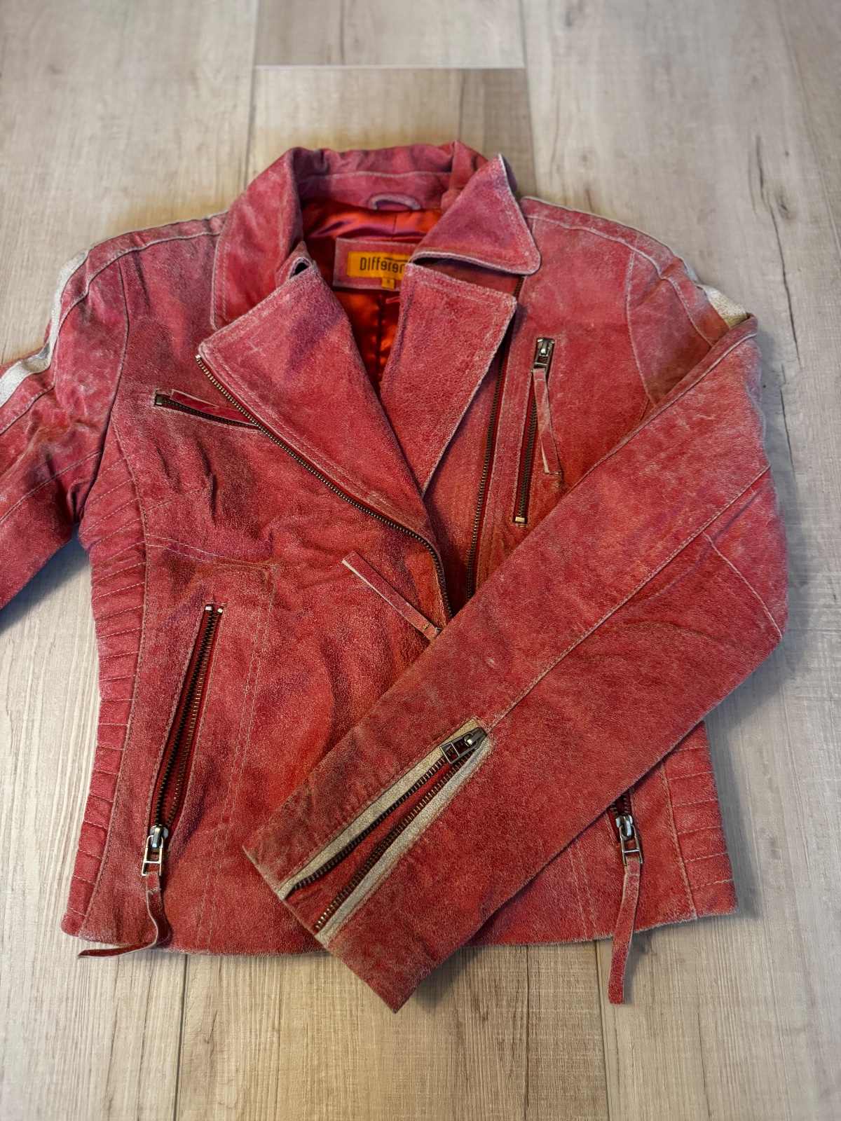 Predám koženú bundu značky Different z pravej brúsenej kože vo vínovej farbe.