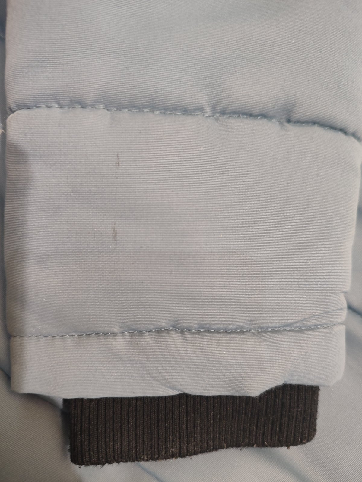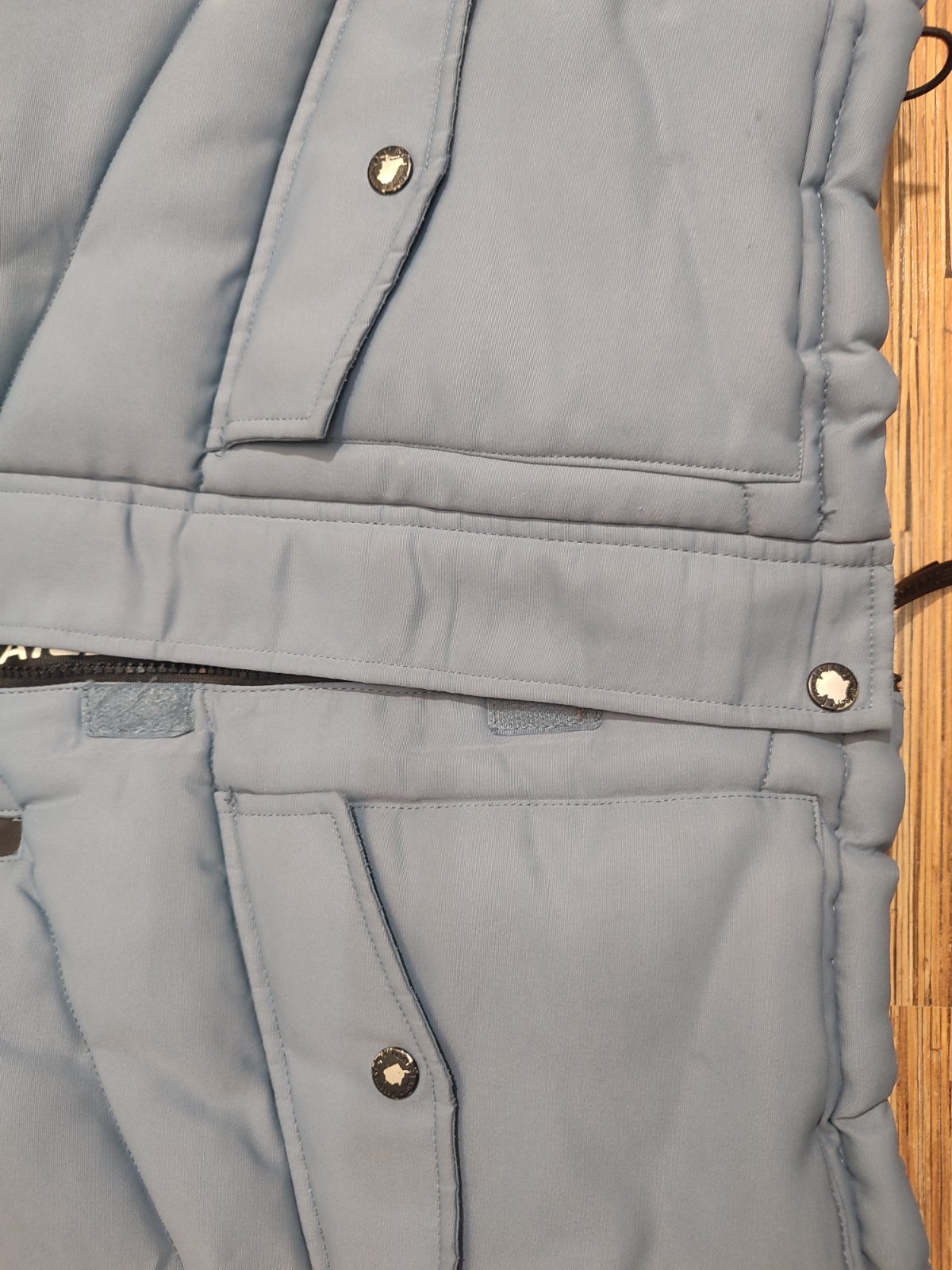 Teplá, lyžiarska aj na bežné nosenie, nafotila som chyby, jedno vrecko je kúsok natrhnuté, na pravom rukáve spodok trochu ošúchaný , na kapucňu sa dá pripojiť aj kožušina - jeden posledný cvok chýb...