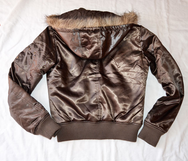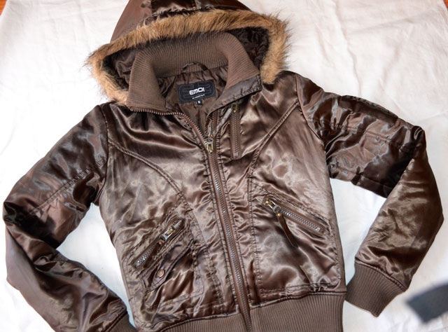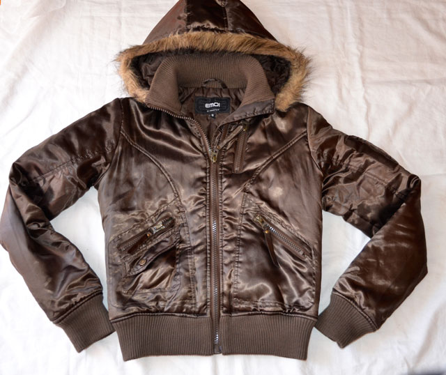 Hnedá mierne lesklá bunda, vhodná na chladnejšie prechodné obdobie alebo miernu zimu, kapuca má kožušinku, dá sa odzipsovať a nosiť aj bez kapuce. Super detaily, rukáv aj spodok bundy ukončený patentom. Minimálne nosená, bez poškodenia. P.C 40 €