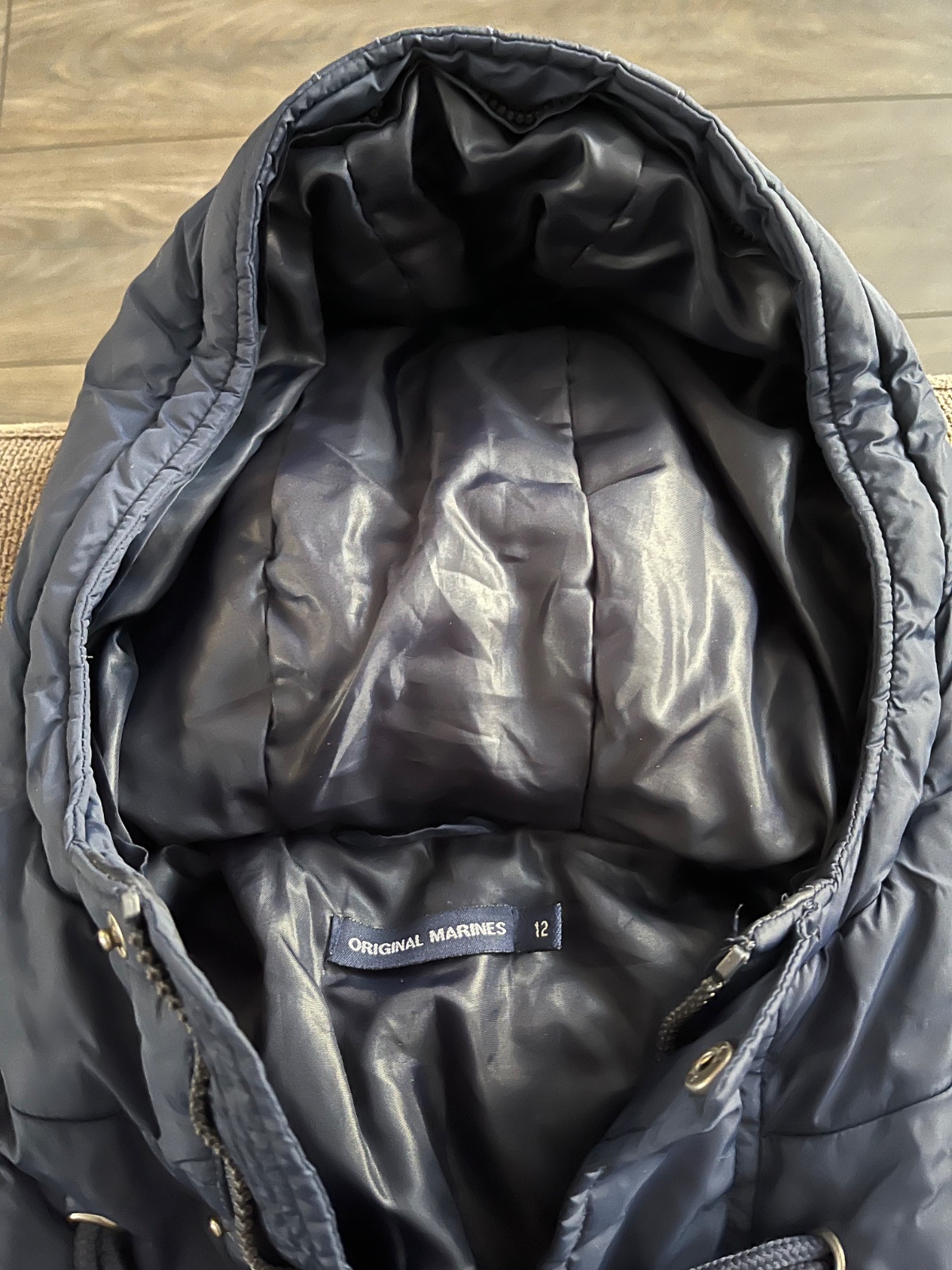 Predam tmavo- modru makku zimnu bundu s kapucou. Velkost napisana nie je, syn ju nosil, ked mal inu o velkosti 152. V pripade zaujmu- premeriam.