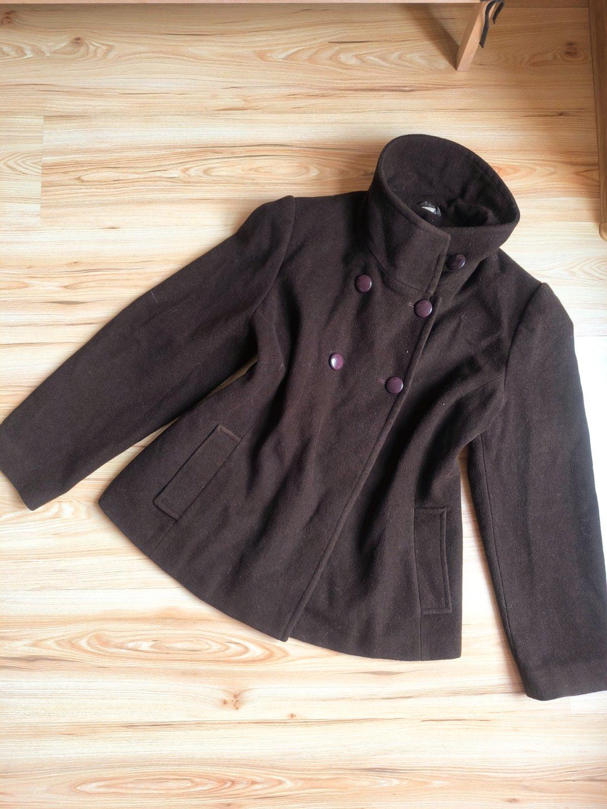 šírka-57,5-59*2 cm, dĺžka-68 cm, tmavohnedý, pri vrecku má malé miesto kde je farba vyblednuta, ale určite ešte poslúži, nosený, ale zachovalý stav