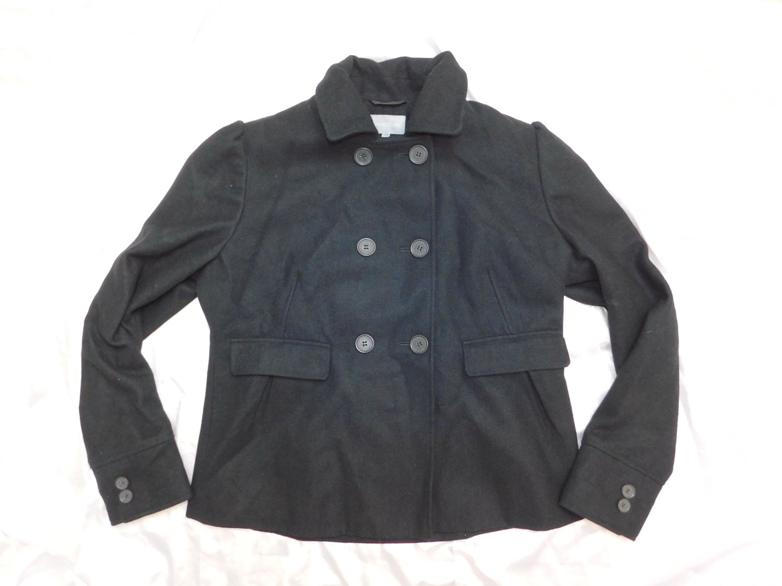 Damsky kvalitny vlneny polokabat,čiernej farby,s podsivkou,dvojradove zapinanie.60%polyester,40%wool.ako novy. B52