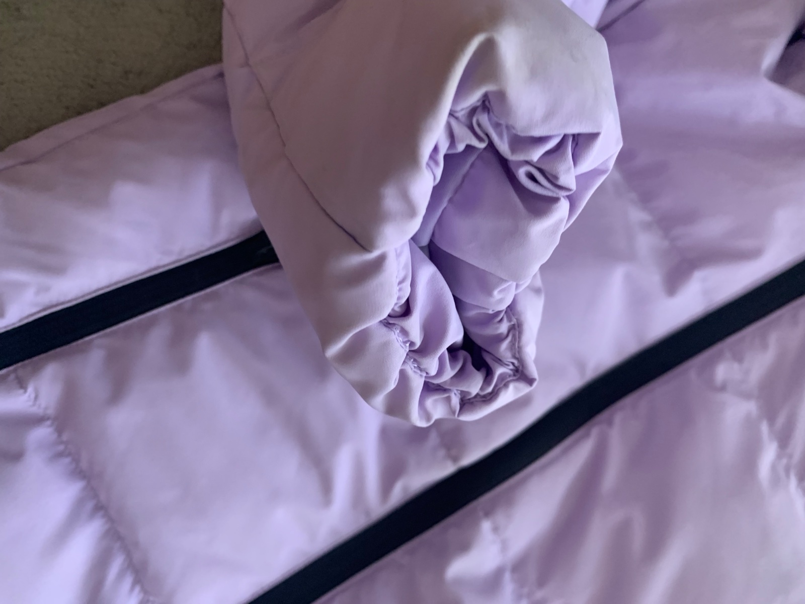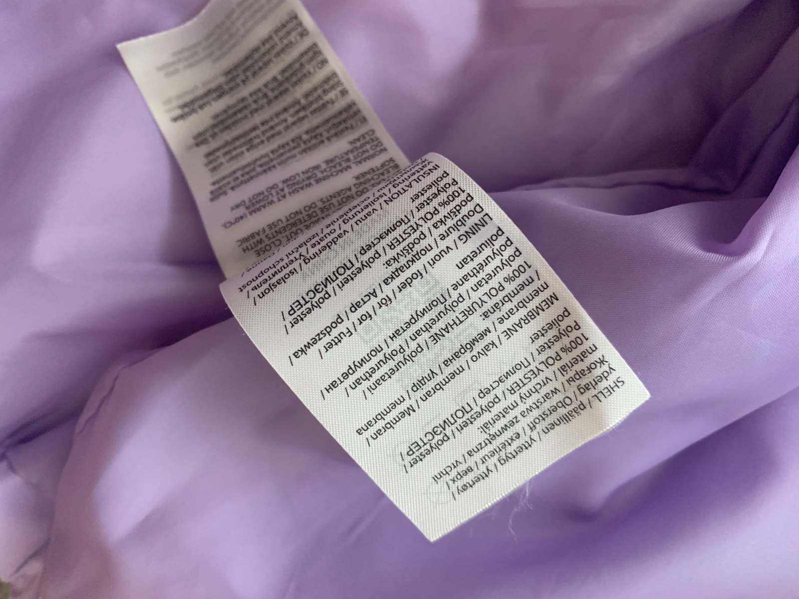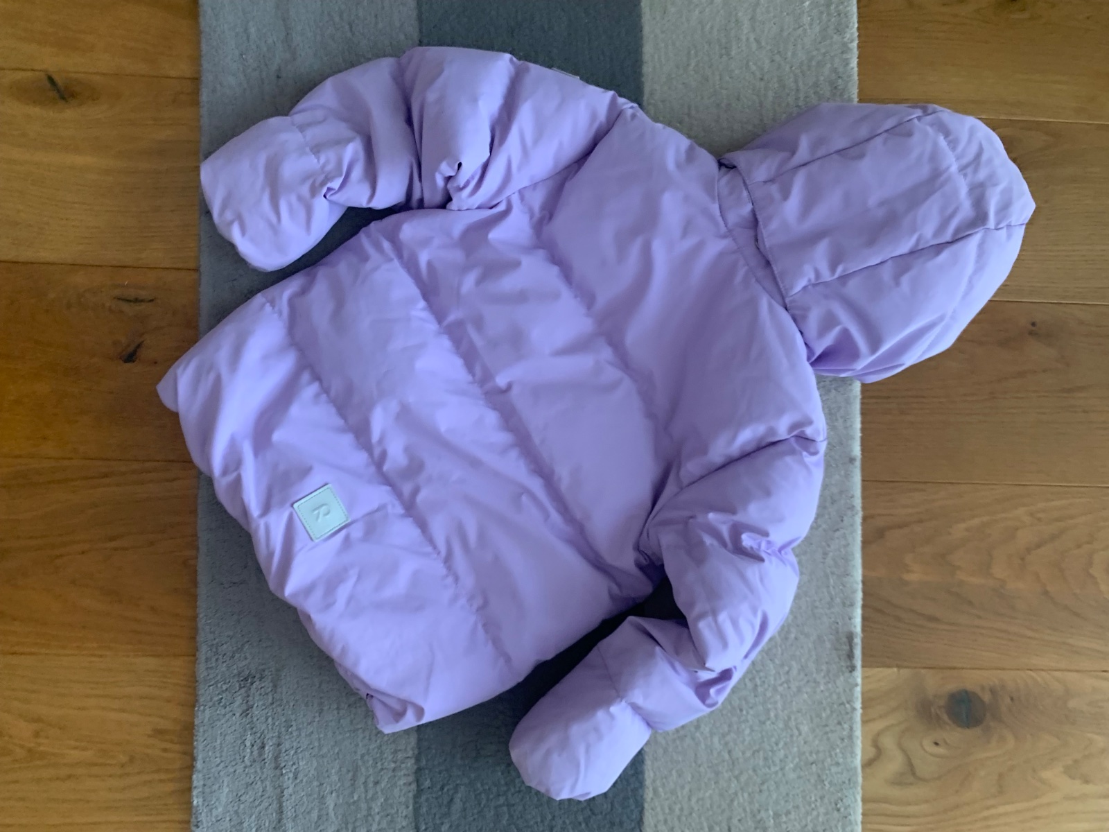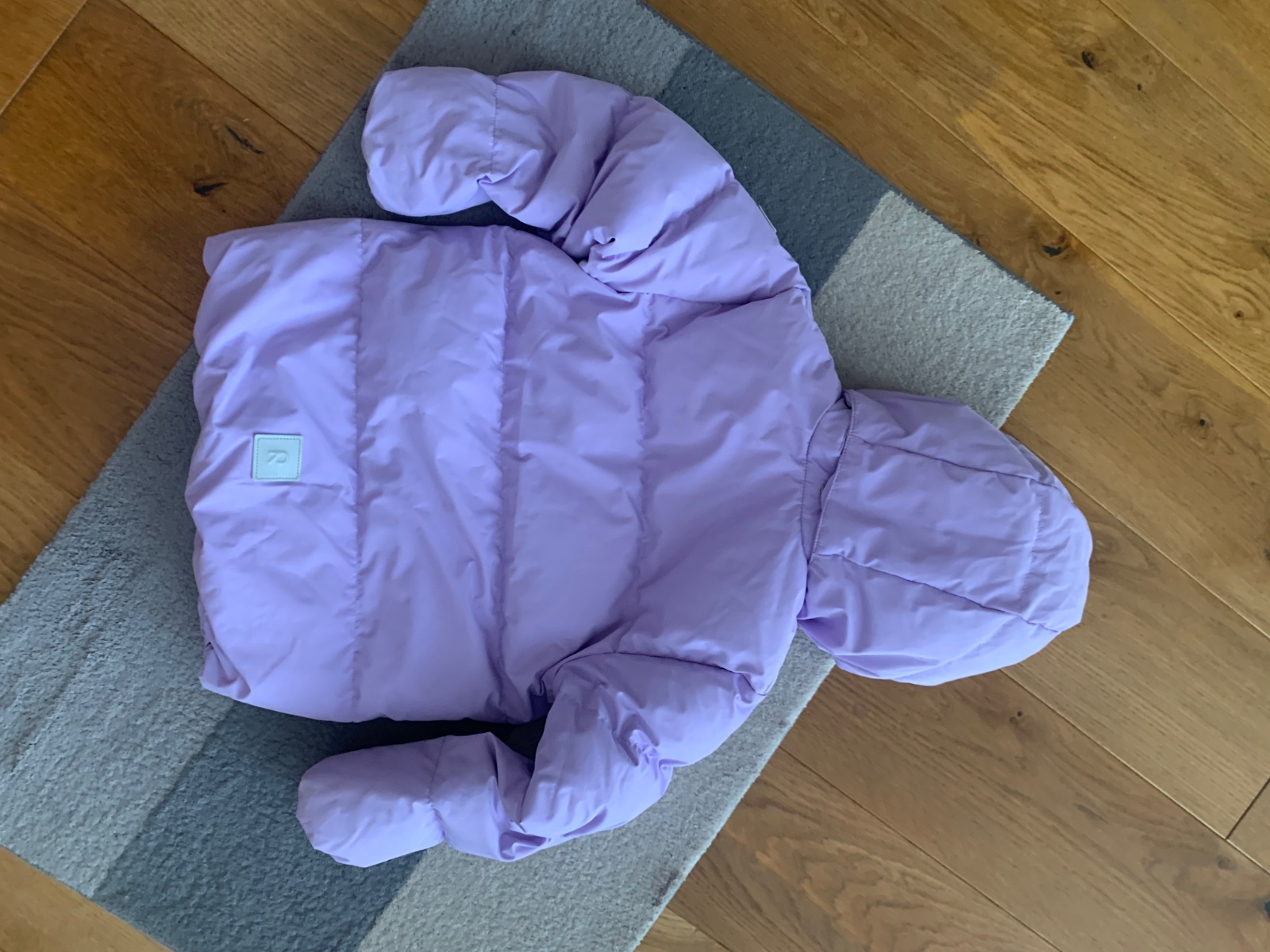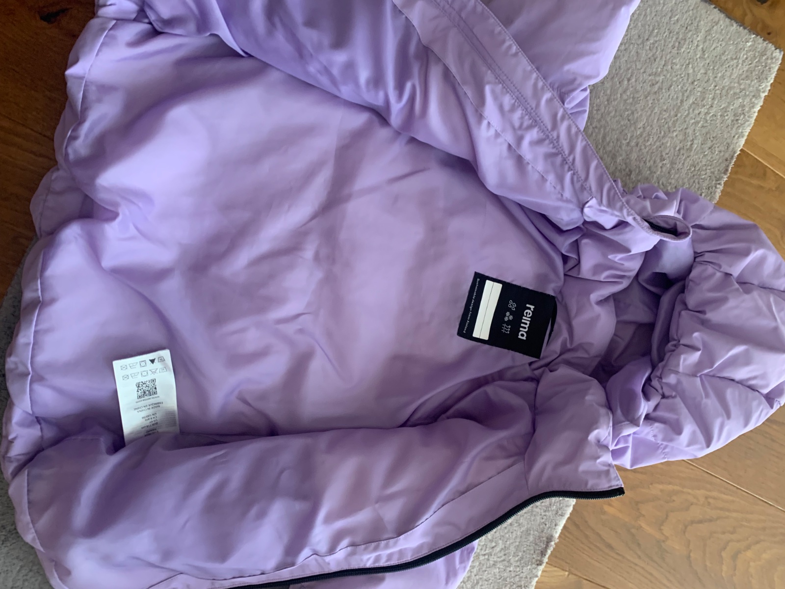 levanduľová veľmi teplá bunda v stále super stave, drobné známky nosenia podrobne zdokumentované, sedí na 116 a 122, kačacia výplň, 1 x čistená v čistoarni, PC 130€