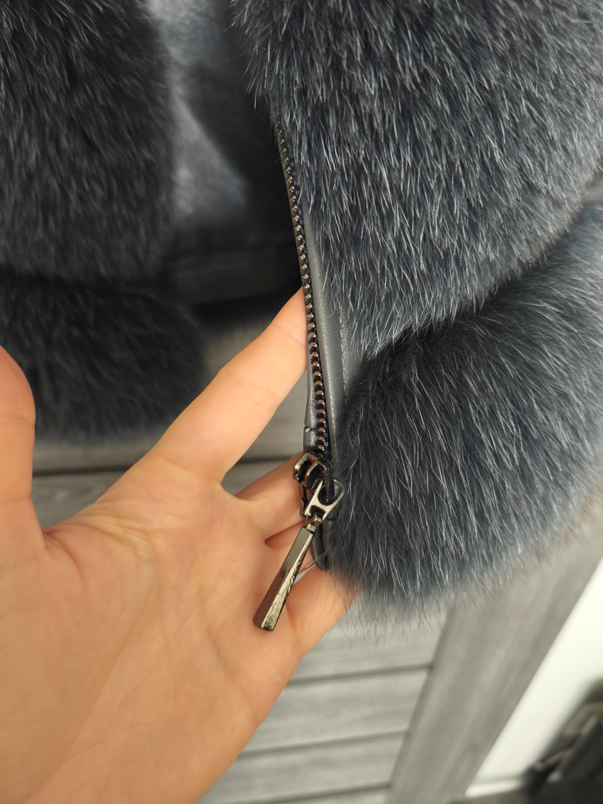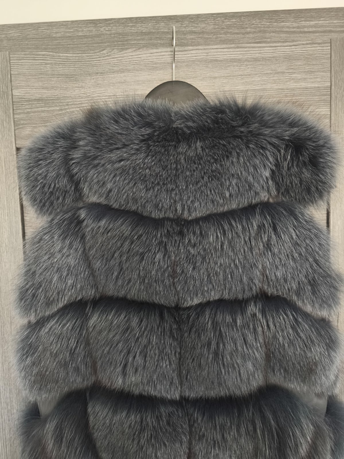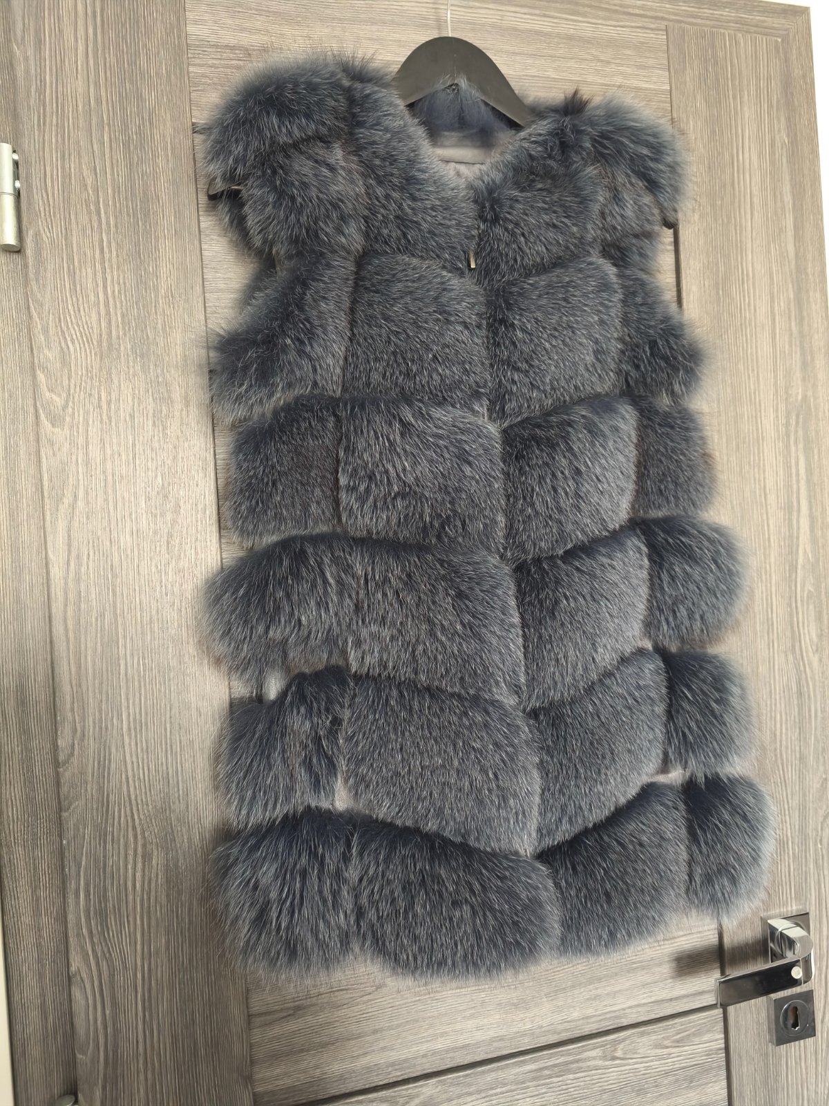 Nadherny kvalitny kusok, znacka Carisma podsita pravou kozou sedi pekne na velkost S aj ked je uvedena M. Farba kozusinky je krasna modro-siva antracitova. Zapina sa na zips ma vrecka. Oblecena1x na prilezitost v top stave uplne ako nova. Povodna cena vysoka.