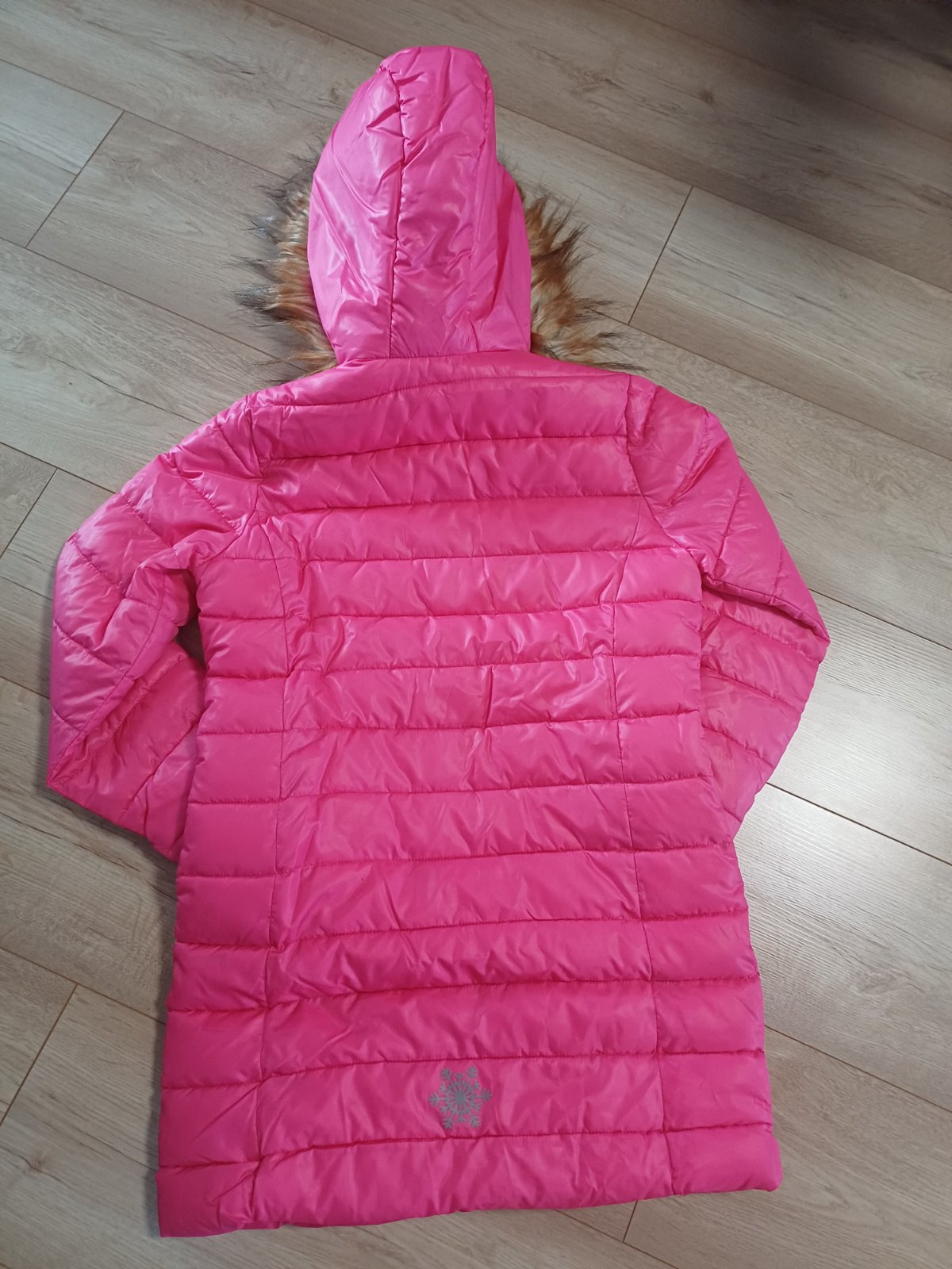 Kúpená minulý rok, vtedy bola dcére veľká a tento rok už je jej malá, hrubá, teplá, odnímateľná kapucňa, obojsmerný zips, dve vrecká,dĺžka 74 cm, šírka v podpazuší 48 cm, šírka na spodu 48 cm, ruká...