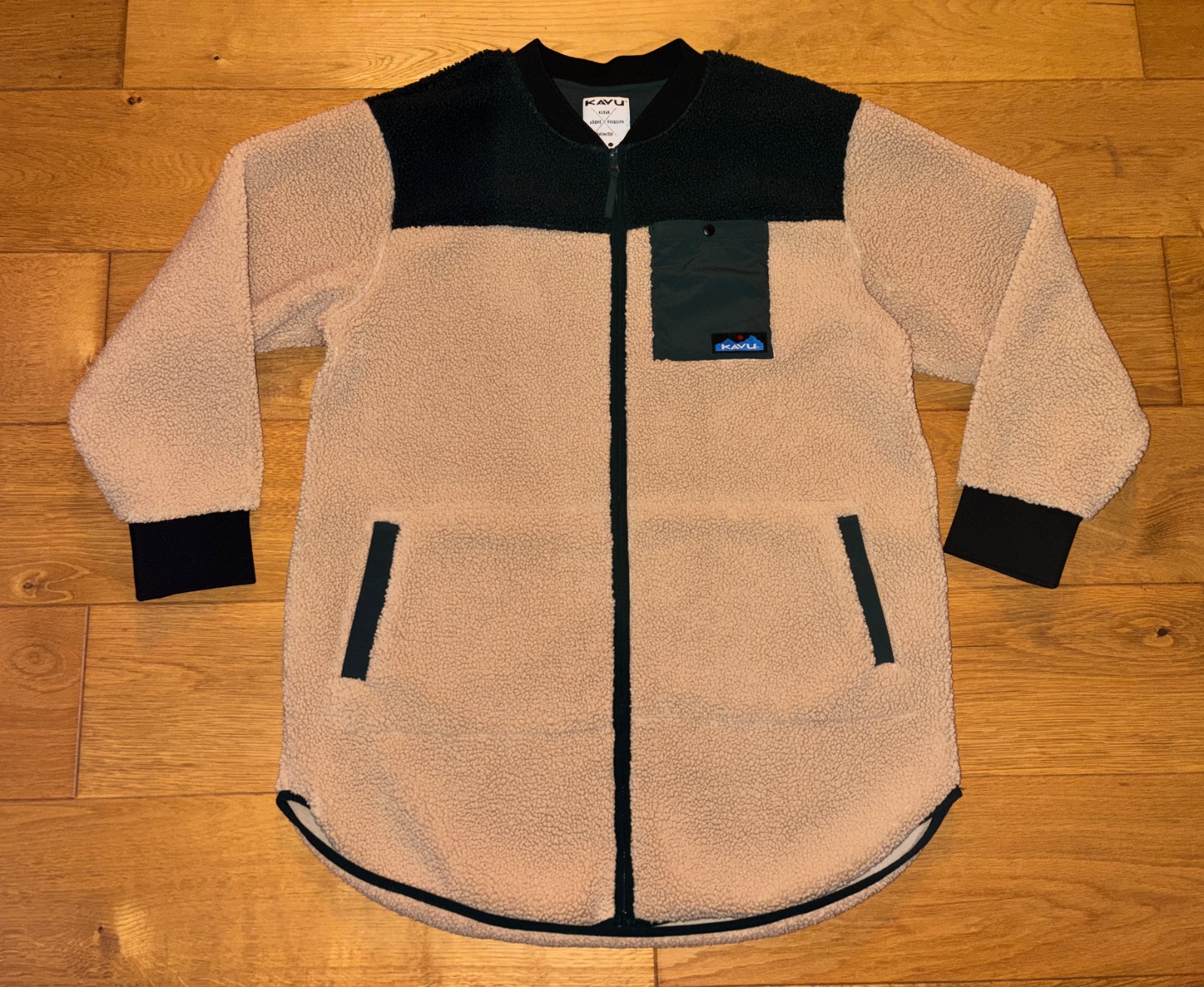 Kvalitná americká outdorová značka KAVU, model Kavu Wintervale je vyrobený z kvalitného sherpa flisu, predĺžený strih pod zadok, hrubé manžety, tri funkčné vrecká.