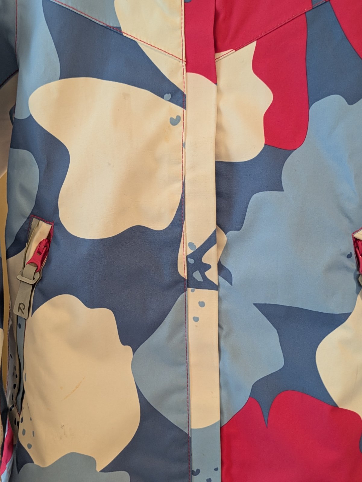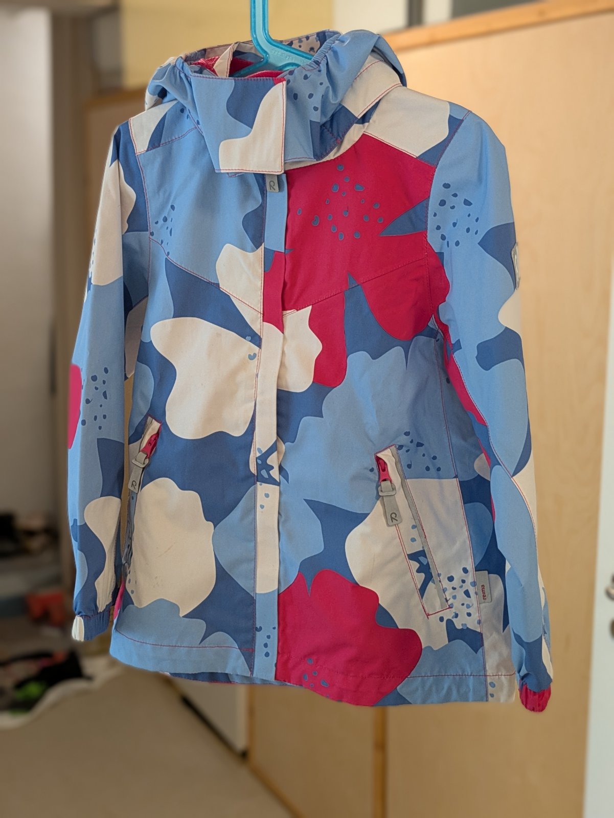 Prechodná vodeodolná vetrovka značky reima. Veľkosť udávaná 116, táto značka ráta so 6cm rezervou, čiže sedí aj na 122cm. Na prednej časti trocha fliačiky, odfotené. Kúsok aj na zadnej strane rukáva. Inak plne funkčná.