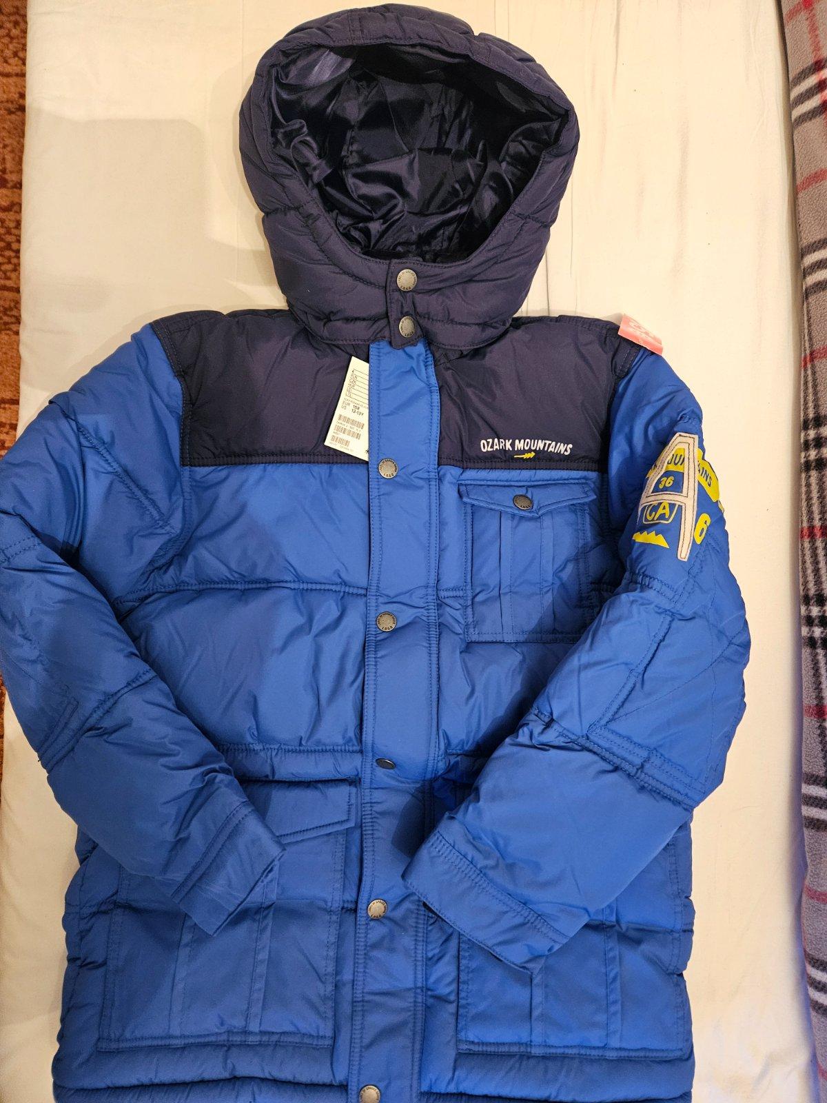 Nová zimná bunda pre chlapca vo veku 12 13 rokov veľkosť 158 centimetrov patenty v rukávoch zapínanie na zips vaky kapucňa odnímateľná vhodné aj ako dar