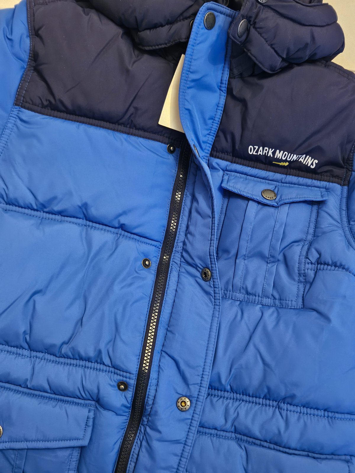 Modrá bunda bez poškodenia má reflexné prvky Šírka -53cm x 2, dĺžka rukáva od ramena -59cm , celková dĺžka 63cm Kapucňa je odopinatelna + Pošta