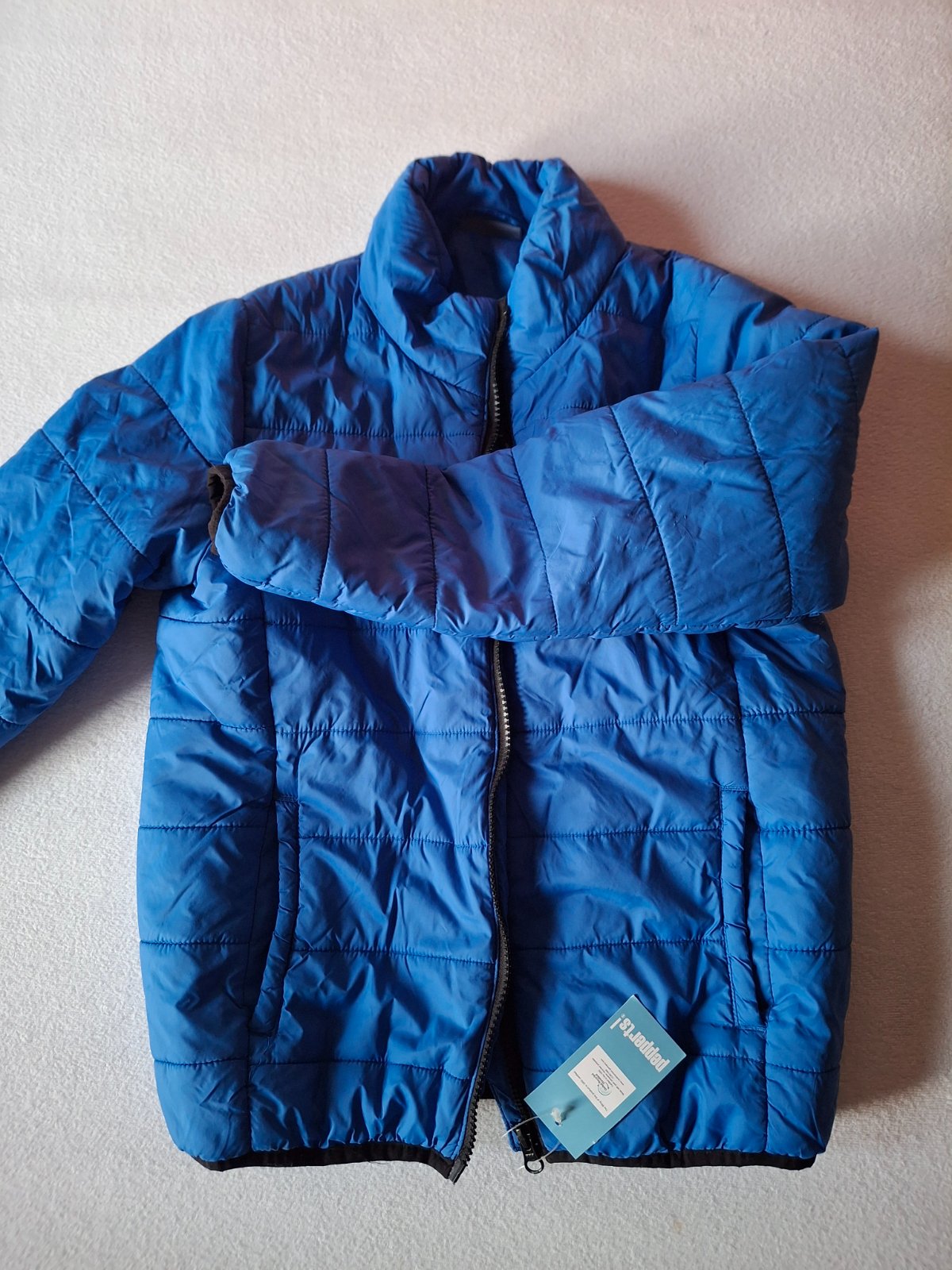 Jemné zateplená bunda, ideálna na jeseň, jar, veľkosť 140, 9-10 rokov. Maskáčová modrá.