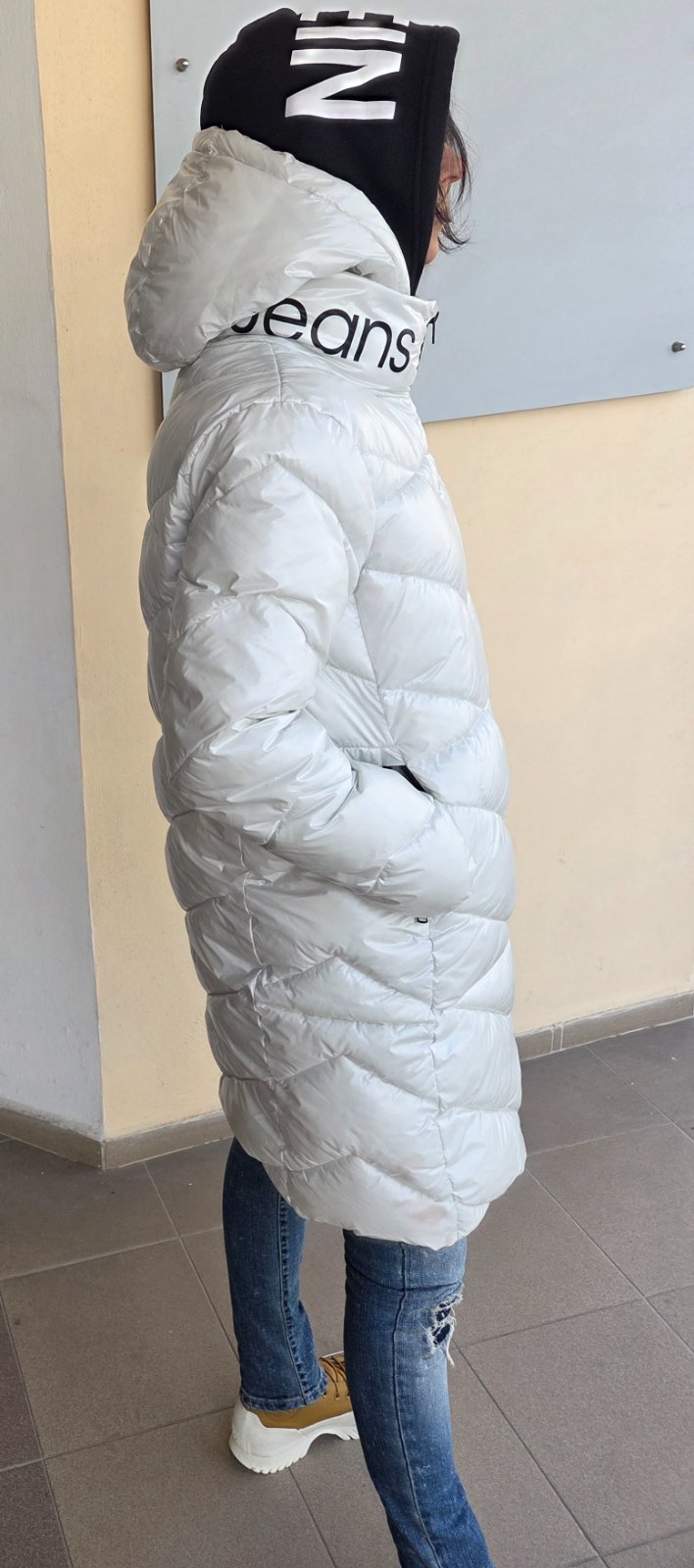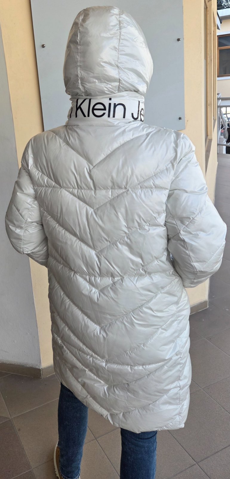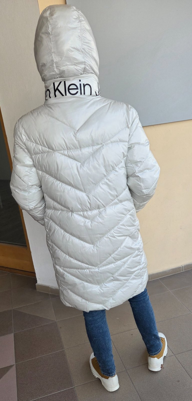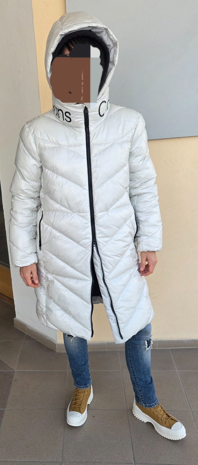 Bola oblečená párkrát , Vnútorná výplň je 100%. Ma obojstranný otvaratelny zips. Má malu chybu z bočnej strany ktora ani nie je príliš vidieť pri noseni.Je zachytena na fotke a zohľadnena v cene. Bunda je inak perfekt budete spokojní. Pôvodná cena bola vysoká