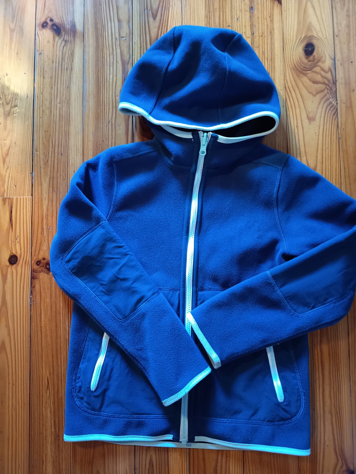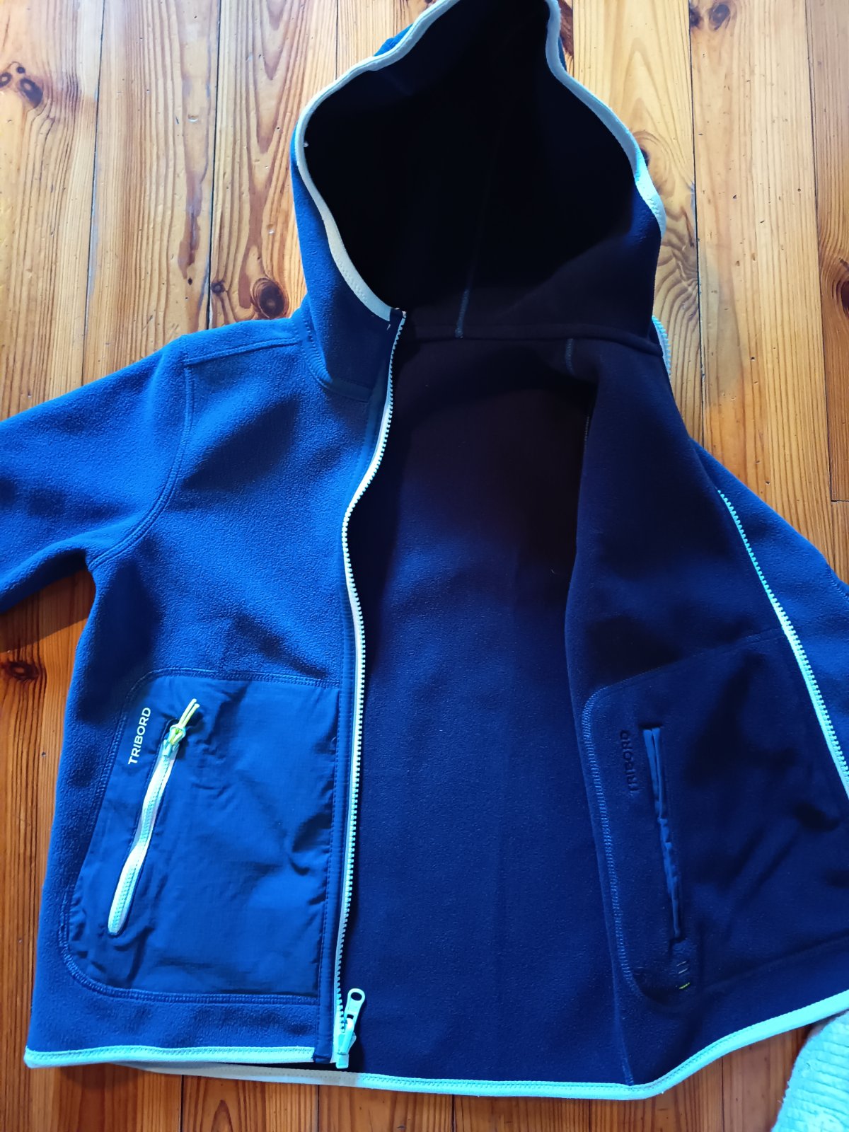 Uzasna nepremokava a neprefukava bundicka z decathlonu, paradna na prechod obdobie, kapucka, vrecka. Na 7-8 rokov, cca 128 velk. Krasna modra farba, bezchybna.
