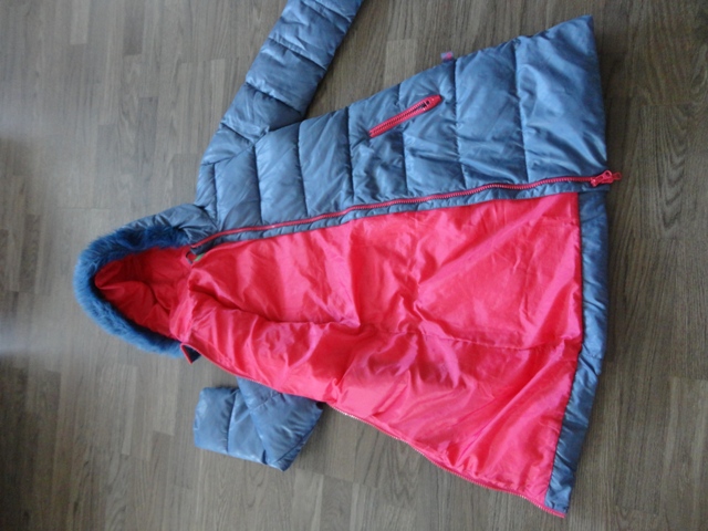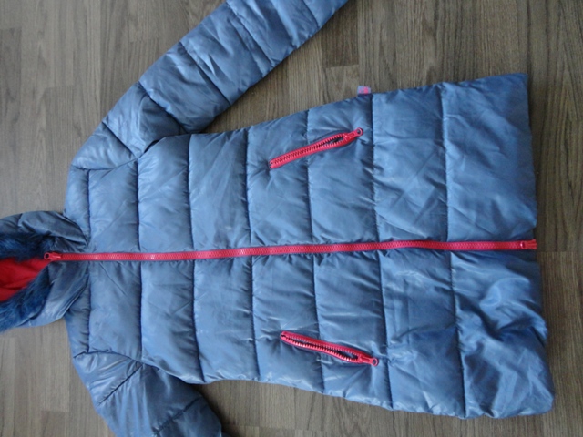 Predám detskú BUNDU/kabát „Benetton“ – kvalitná detská dlhá vetrovka (kabát) zn. „Benetton“, č. 2XL (11-12 rokov/160 výška), materiál: šušťák, farba: sivo-modrá, vnútro a zipsy ružové (čo pekne bundu oživí), páperová (dá sa prať na 30 stupňov). Kapucňa s kožušinkou, obojstranný zips, prešívaná.