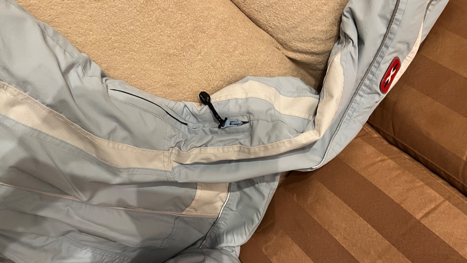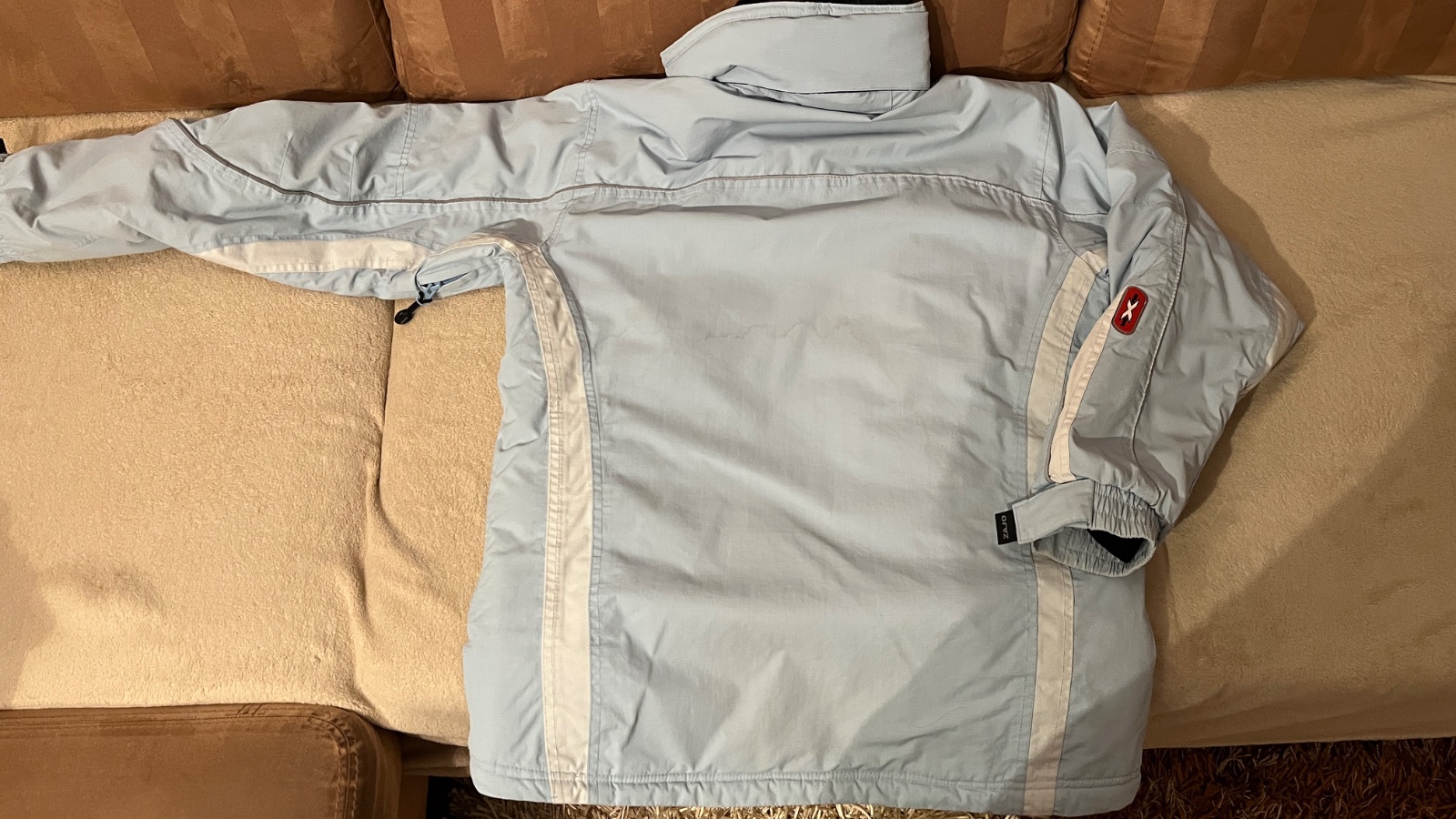 Vetrovka je bez poskodeni, vsetky zipsy aj suche zipsy sú funkčné, primerané opotrebenie.
