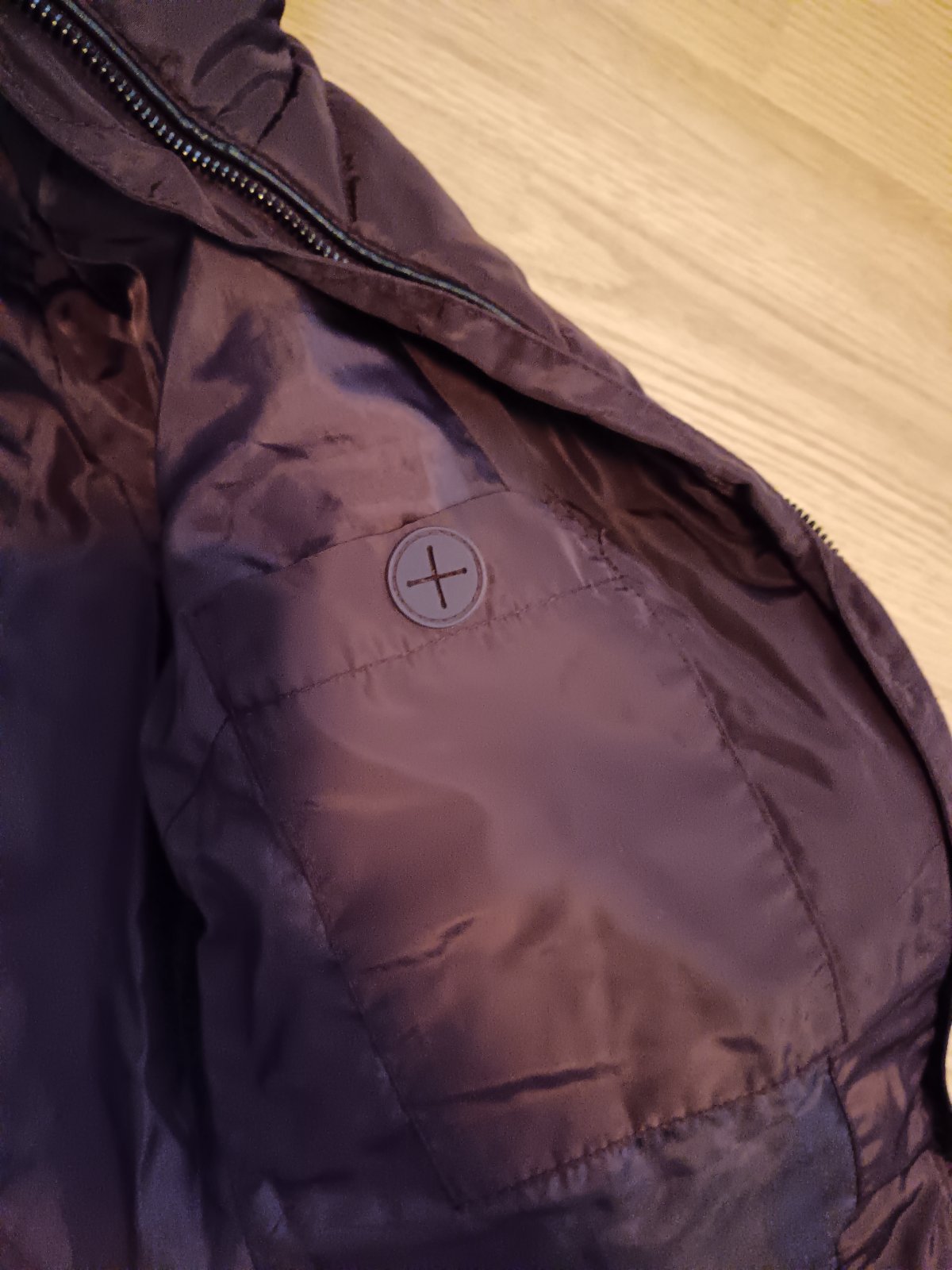 Vetrovka je v super stave, takmer nenosená. Má veľa prepracovaných detailov, opasok okolo pása sa môže nosiť a nemusí, kapuca sa dá odopnúť, na chrbte je reflexný pásik. Farba bundy je veľmi zaujím...