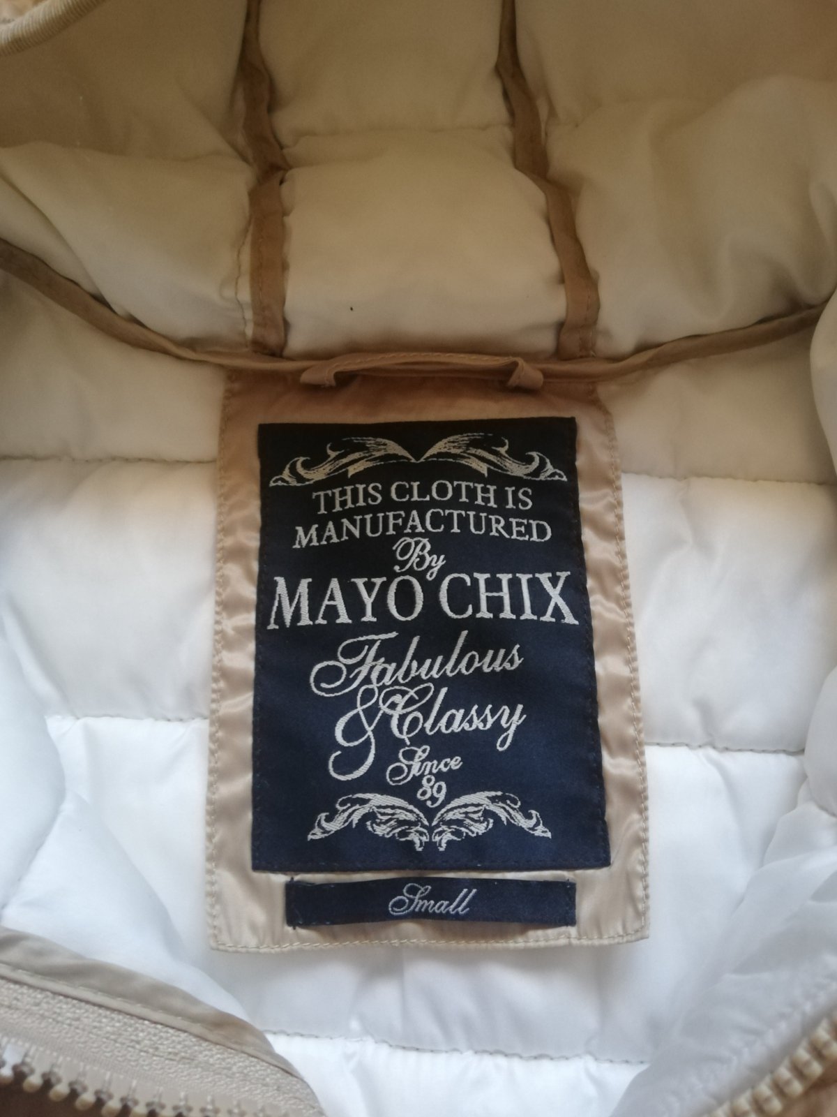 Malo noseny, ako novy. Bunda, kabat, plast, parka, trenckot Mayo Chix. Na chrbte vyšivka. Premeriam. Cena bez postovneho.