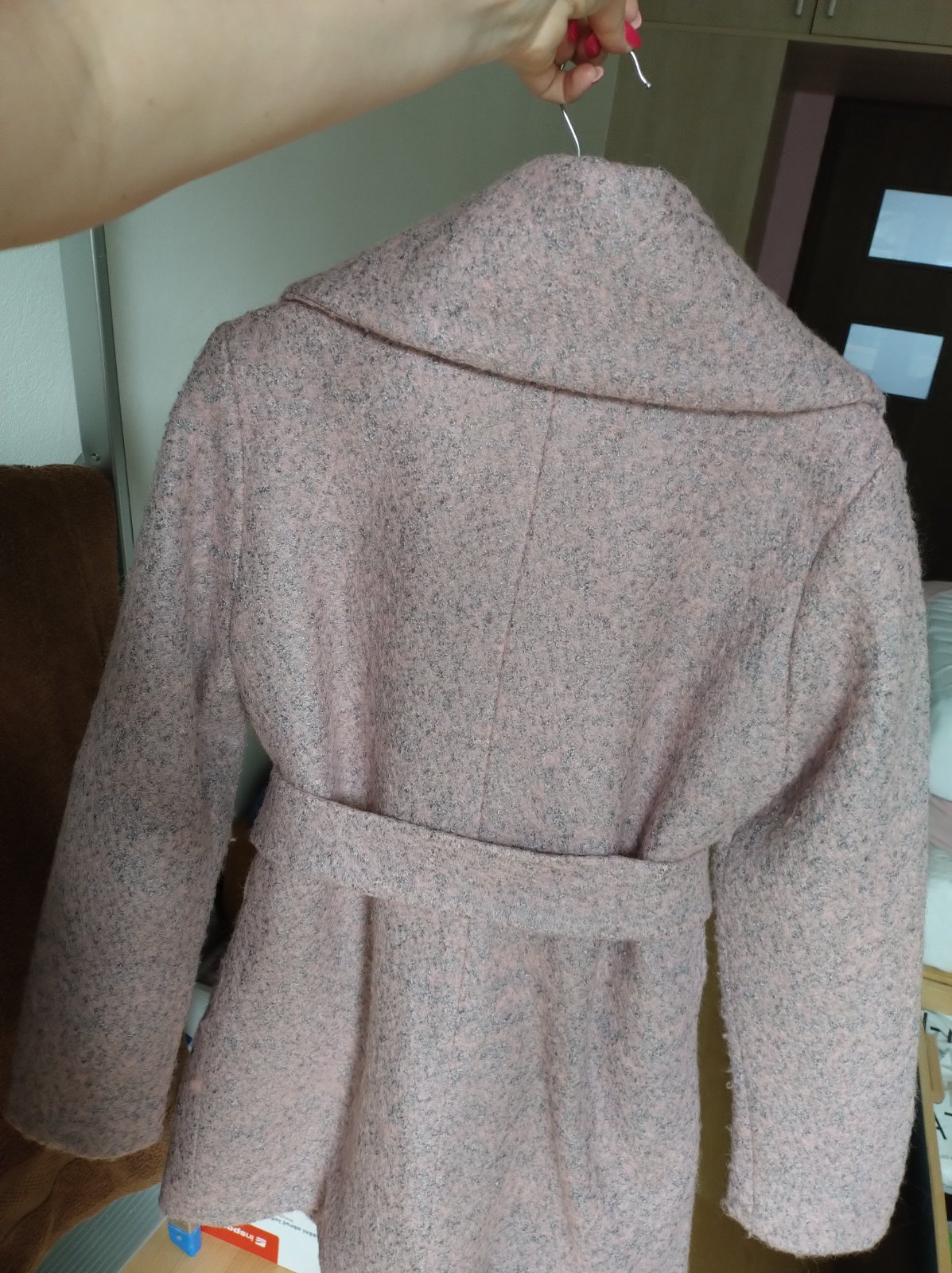 Predam pekny zimny kabat, obleceny par krat na prilezitosti , je to taka ruzovosiva farba , obsahuje 25% vlny