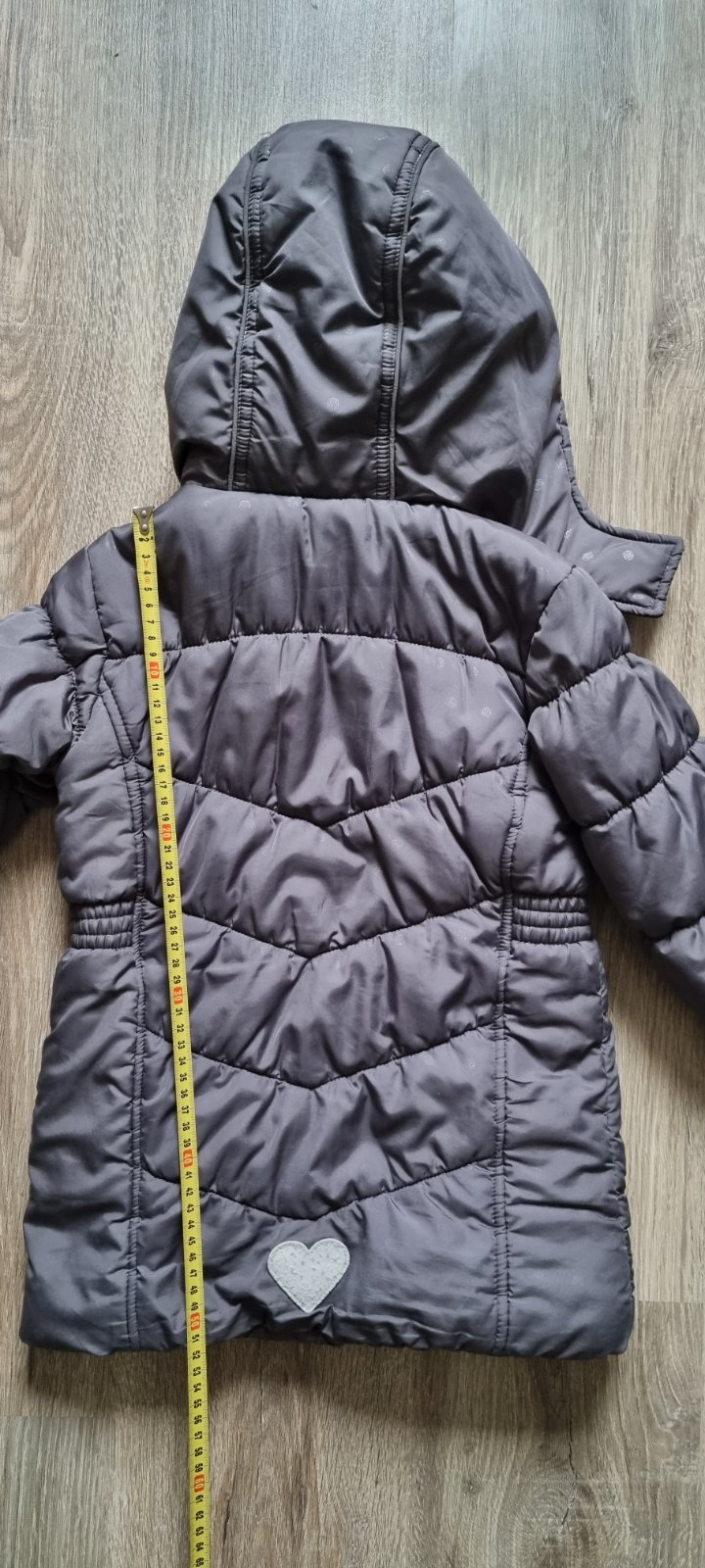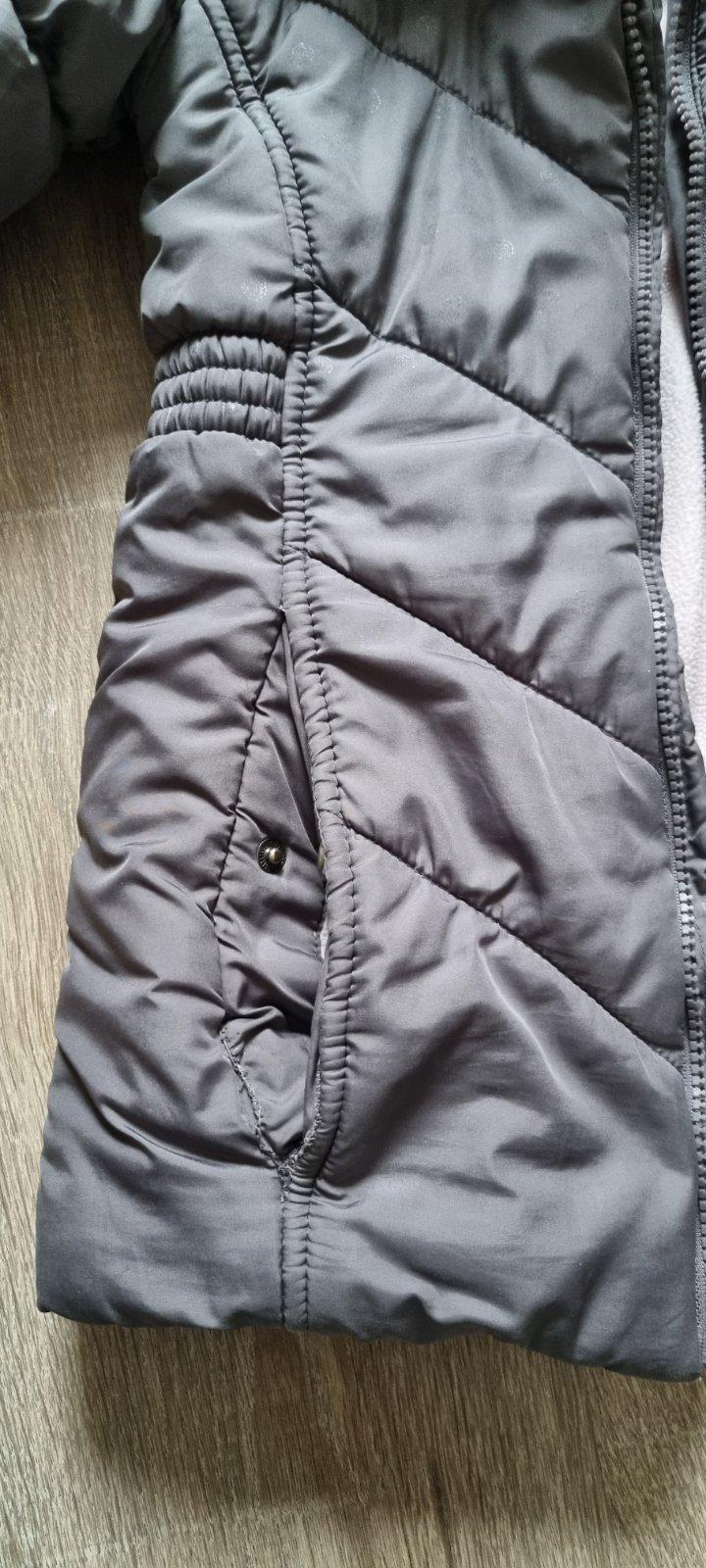 Teplá bunda. Na foto vidno zašívané vrecko a reflexné srdiečko už nie je reflexné.